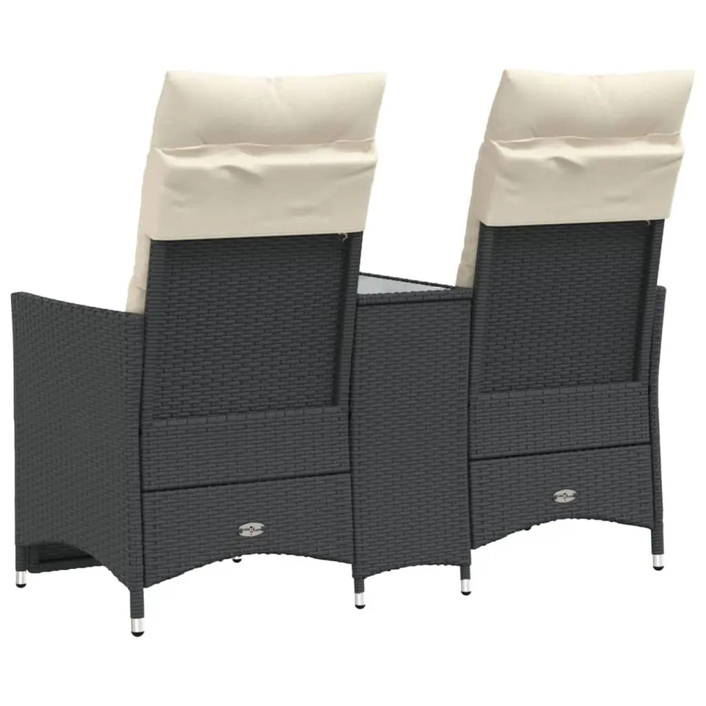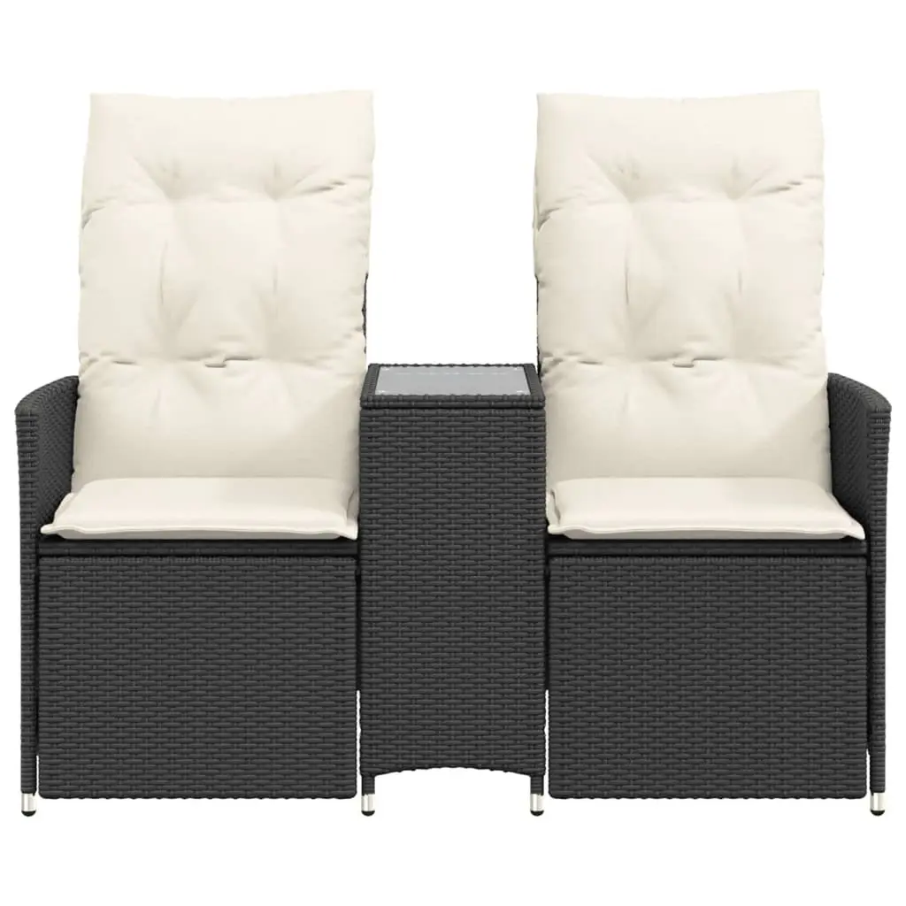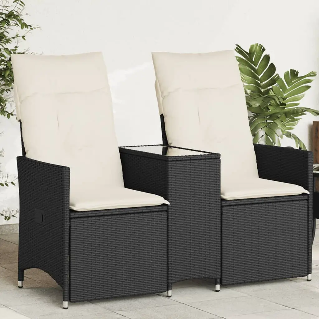 This reclining garden sofa adds a stylish yet practical touch to any outdoor area, easily accommodating up to 2 people with plenty of room to kick back or entertain. Its modern look blends perfectly with various patio setups, making it a great spot to chill while enjoying the outdoors—perfect for lazy afternoons or evening hangouts. Weather-Resistant Materials: Made from UV-resistant and water-repellent PE rattan, so it stays looking good no matter the weather. This sofa is a top choice for any garden.Adjustable Comfort: With a multi-position backrest and adjustable armrests, you get to choose how comfy you want to be, whether you’re chilling with a book or sipping drinks with friends.Integrated Table: The built-in central table is just the thing for drinks, snacks, or decorative bits, adding both functionality and flair while keeping your area tidy.Simple Maintenance: Cushions come with covers that you can easily pop off and wash, making it super easy to keep your furniture looking fresh and inviting.Durable Frame Construction: Built with a sturdy powder-coated steel frame, this sofa promises to last, supporting up to 242.5 lbs while keeping a sleek look to enhance any outdoor area.