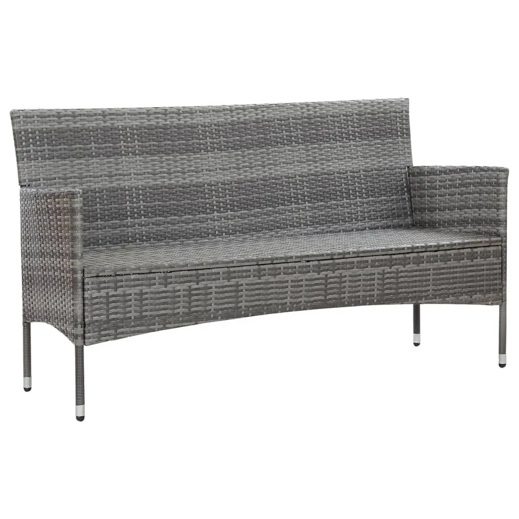 Vidaxl Sofa Grey Pe Rattan, Steel, Polyester Fabric 3-Seater