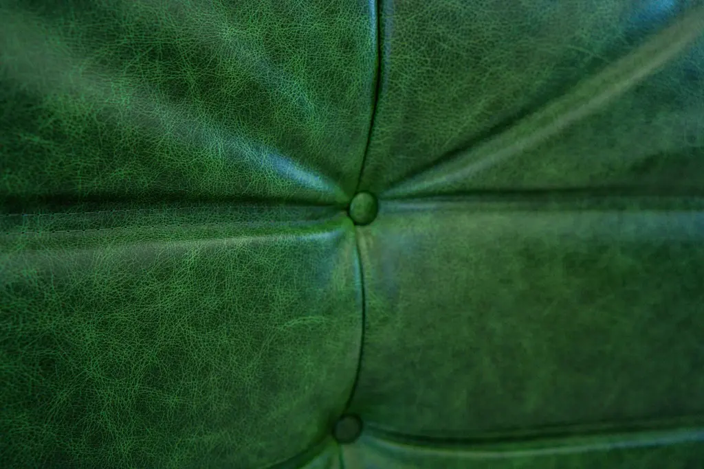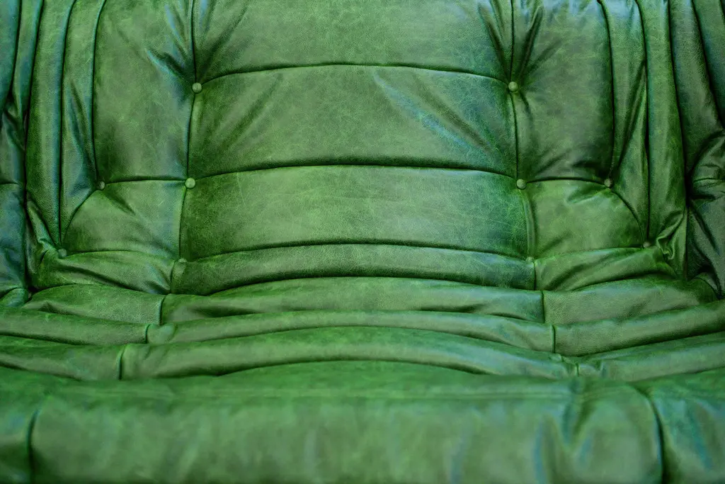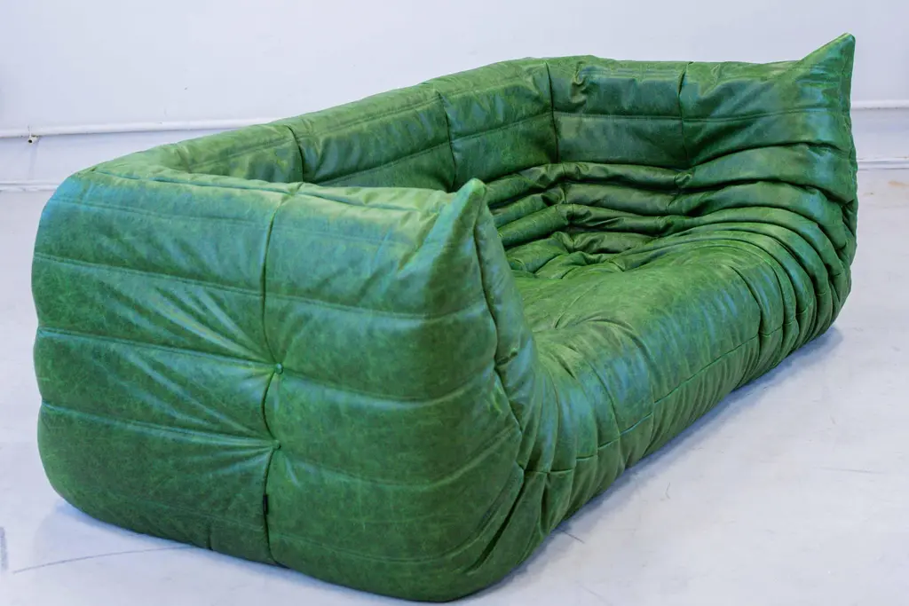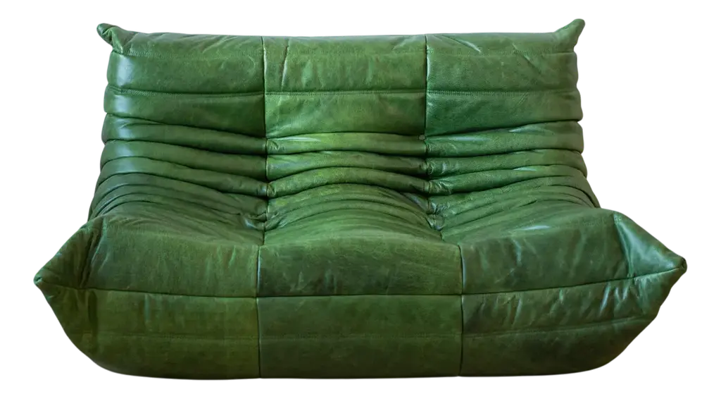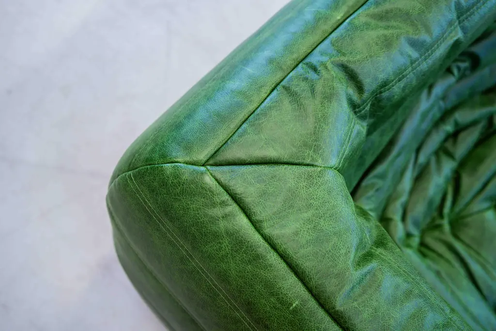 Vintage Two-Seat Togo Sofa With Arms In Green Leather By Michel Ducaroy For Ligne Roset, 1970s