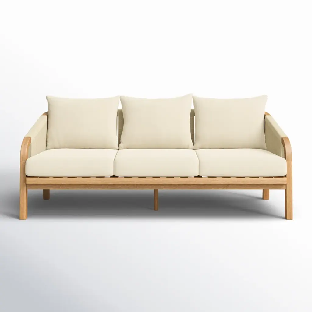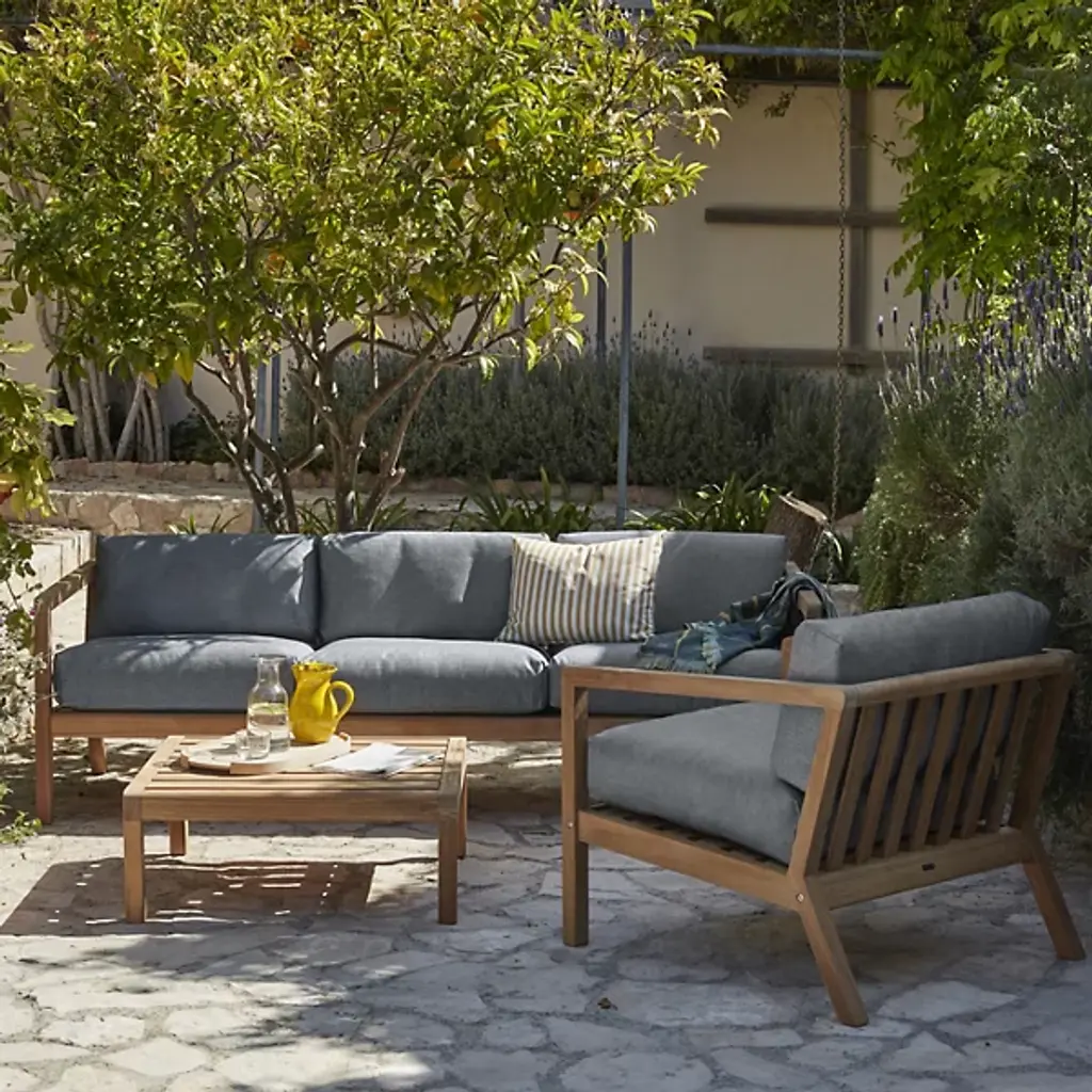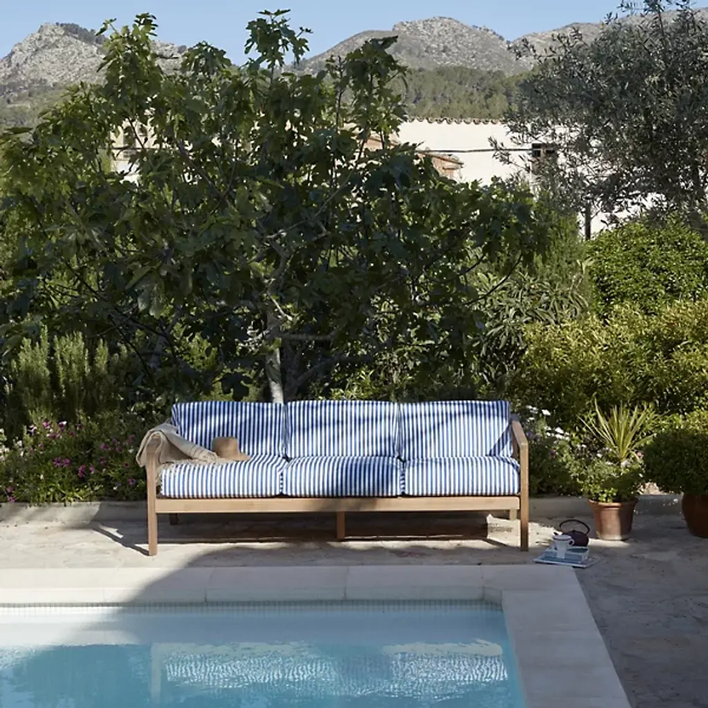 The Virkelyst Outdoor 3 Seater Sofa from Fritz Hansen brings to the outdoors a handsome design whose generous comfort rivals those of furnishings found indoors. As their name suggests, designer Says WHO challenges themselves to create unconventional pieces rooted in simplicity, minimalist and Scandinavian design. Here, the studio draws a tidy, angular frame created in solid wood. The textures and tones of the wood pop visually against the clean color of the cushions inside. These cushions sit on deeply with a foam fill serving as soft support. The fill and wrap of the cushions sport weather-resistant properties for peace of mind.
