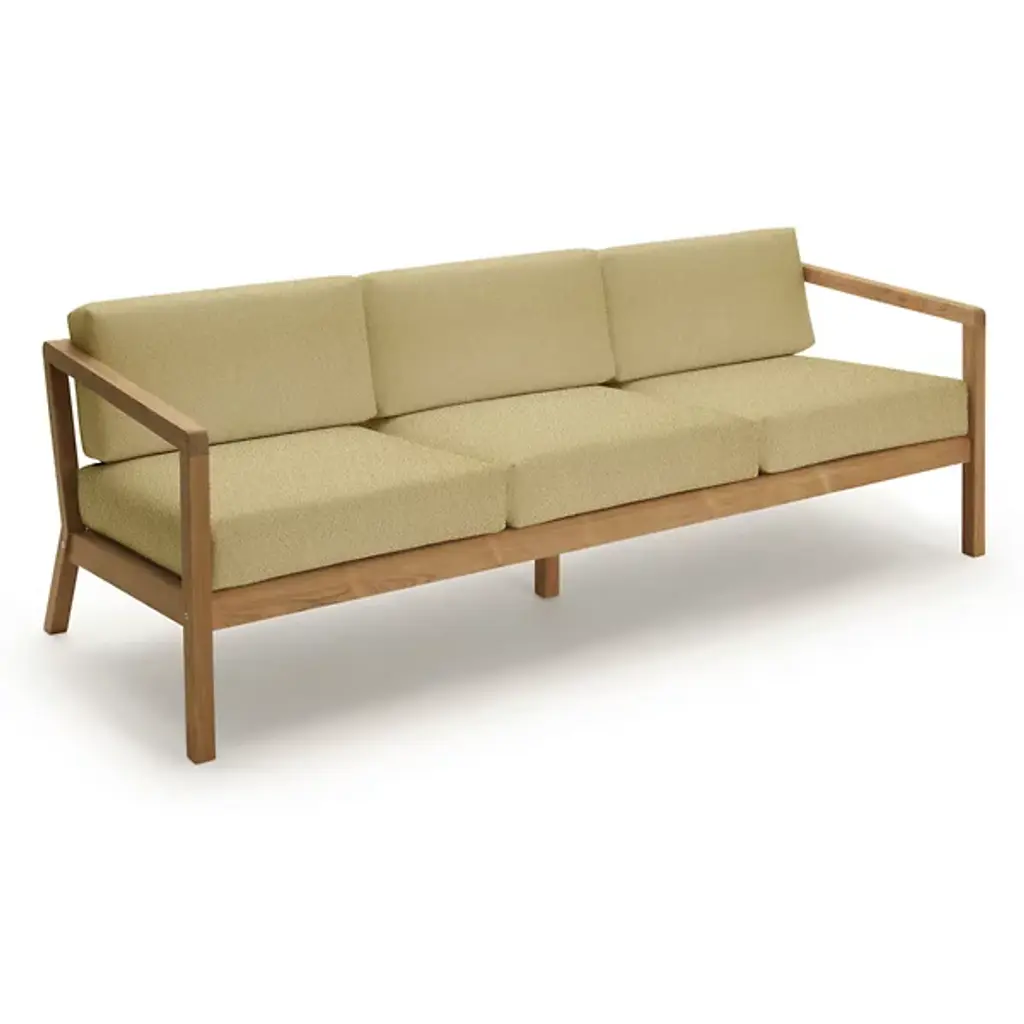 The Virkelyst Outdoor 3 Seater Sofa from Fritz Hansen brings to the outdoors a handsome design whose generous comfort rivals those of furnishings found indoors. As their name suggests, designer Says WHO challenges themselves to create unconventional pieces rooted in simplicity, minimalist and Scandinavian design. Here, the studio draws a tidy, angular frame created in solid wood. The textures and tones of the wood pop visually against the clean color of the cushions inside. These cushions sit on deeply with a foam fill serving as soft support. The fill and wrap of the cushions sport weather-resistant properties for peace of mind.