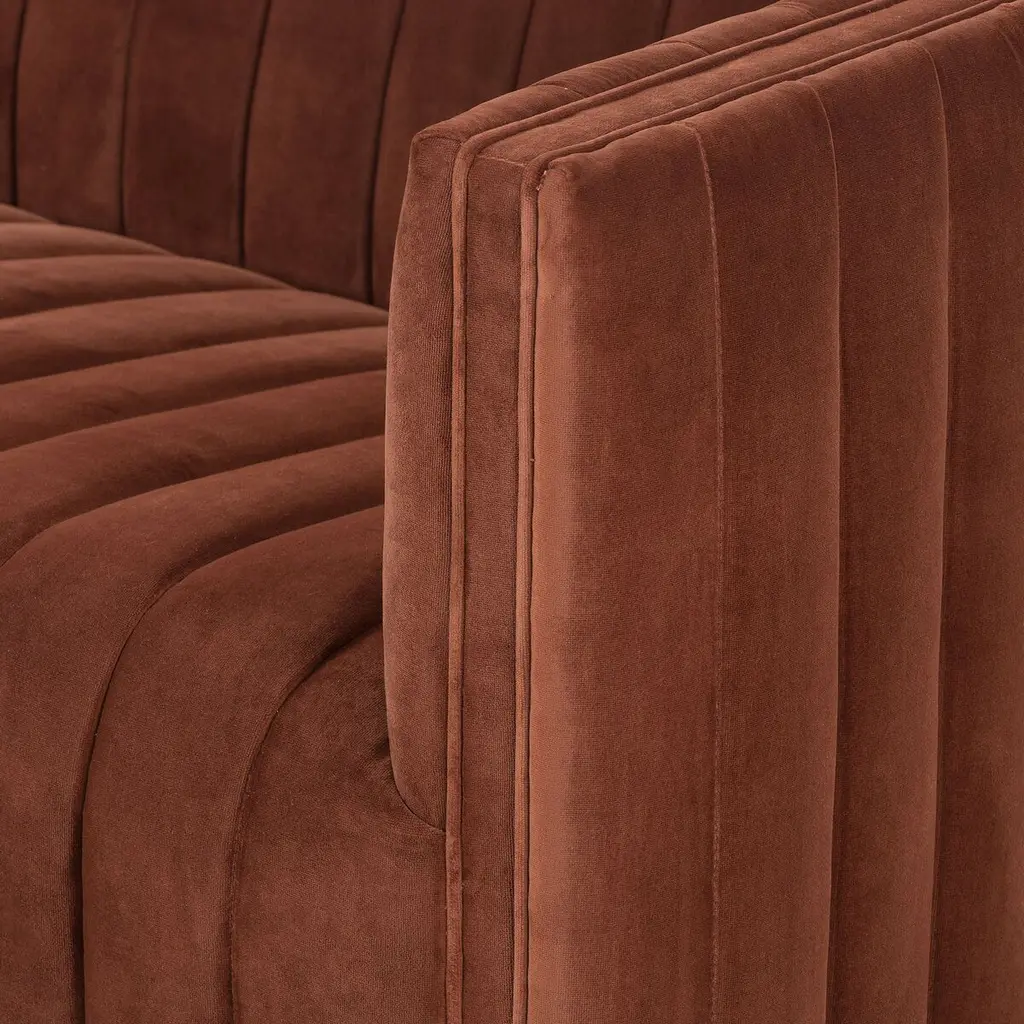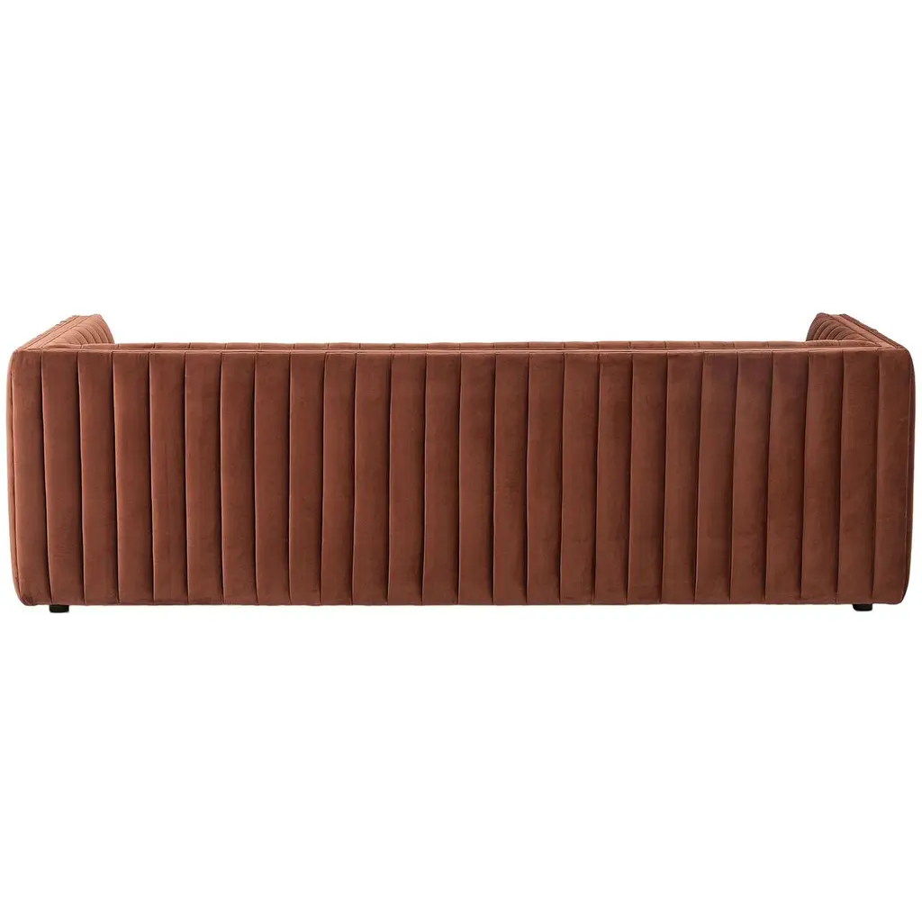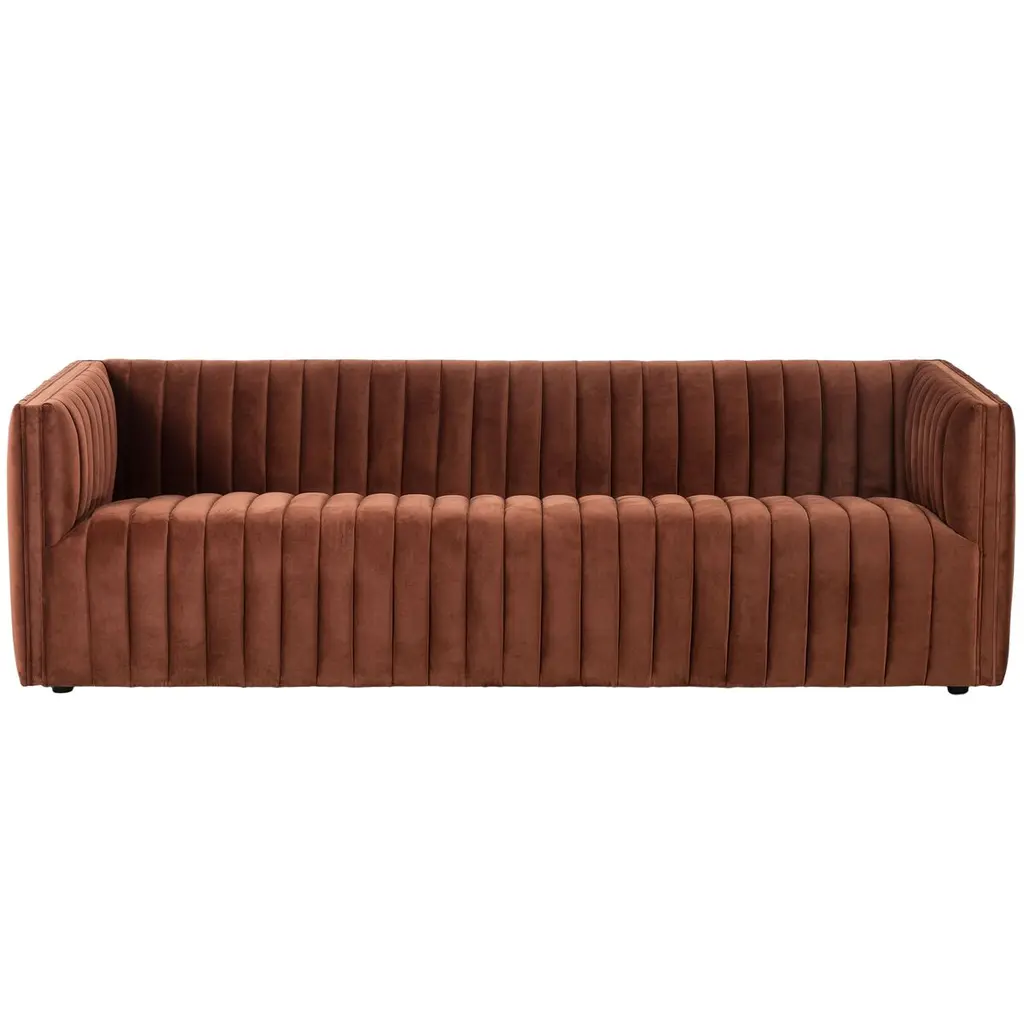 Upholstered in sumptuous velvet, this channeled tuxedo sofa will bring Art Deco sophistication to your home. S-spring seat construction and foam-and fiber cushioning ensures that the sofa is as comfortable as it is chic.