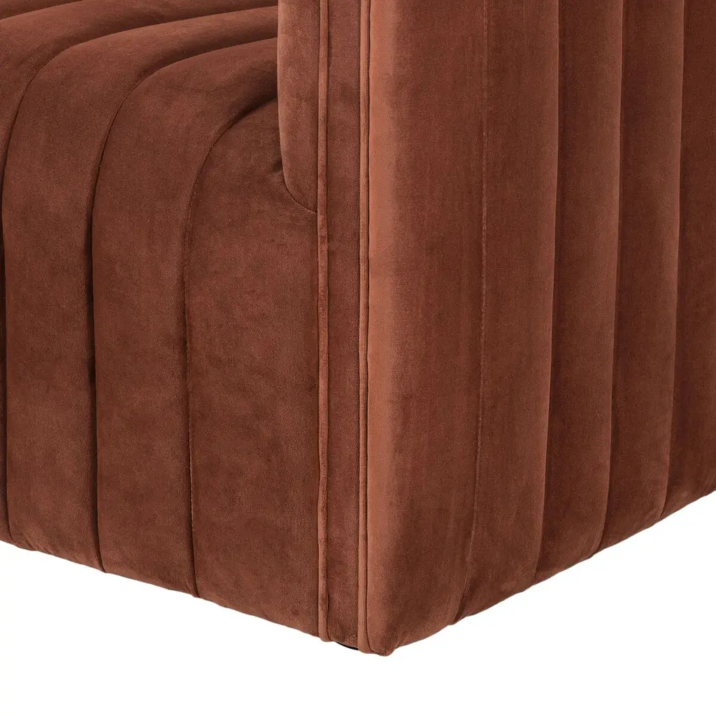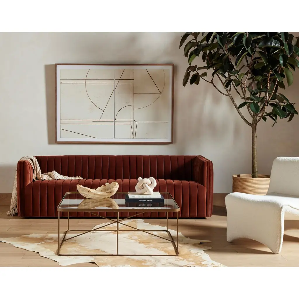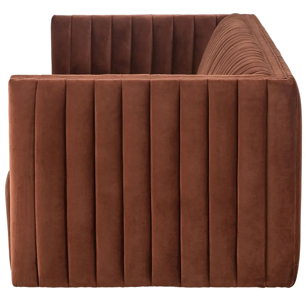 Upholstered in sumptuous velvet, this channeled tuxedo sofa will bring Art Deco sophistication to your home. S-spring seat construction and foam-and fiber cushioning ensures that the sofa is as comfortable as it is chic.
