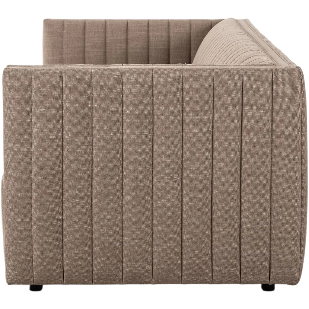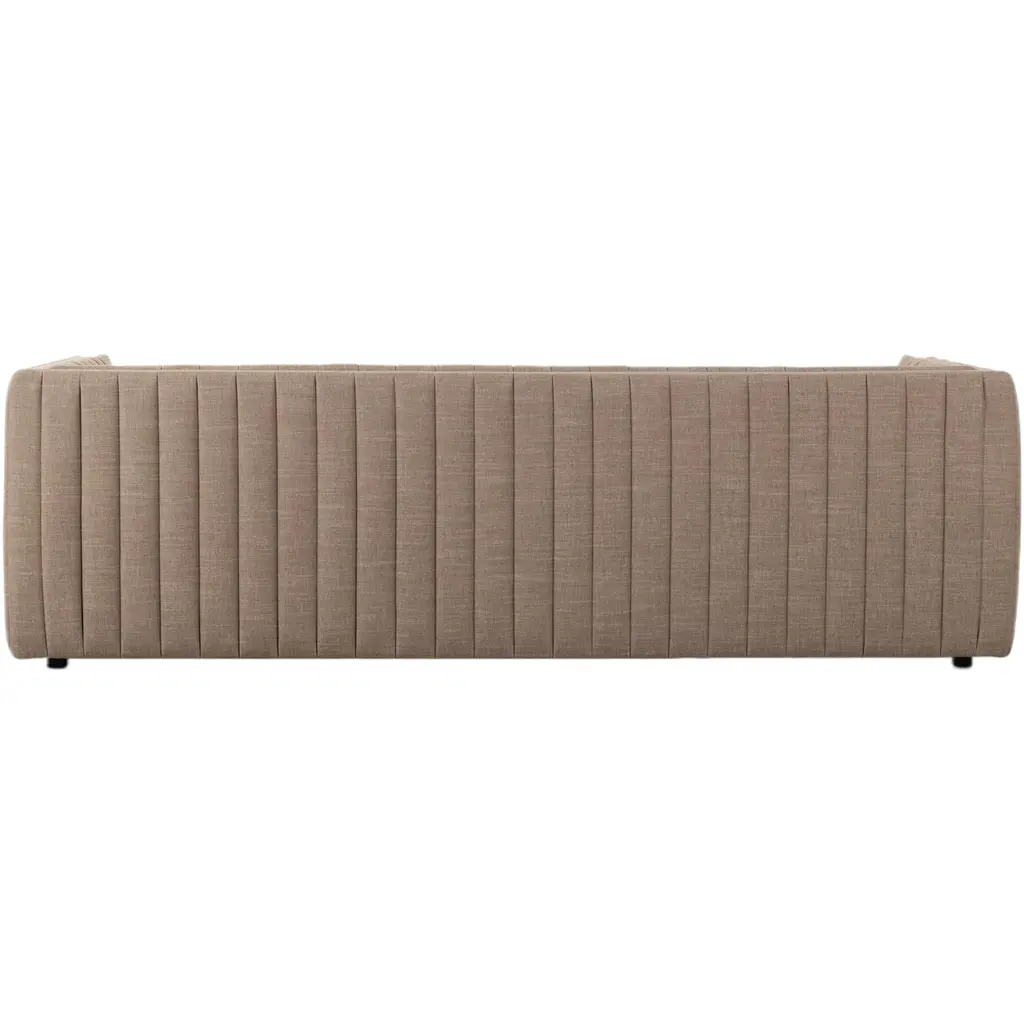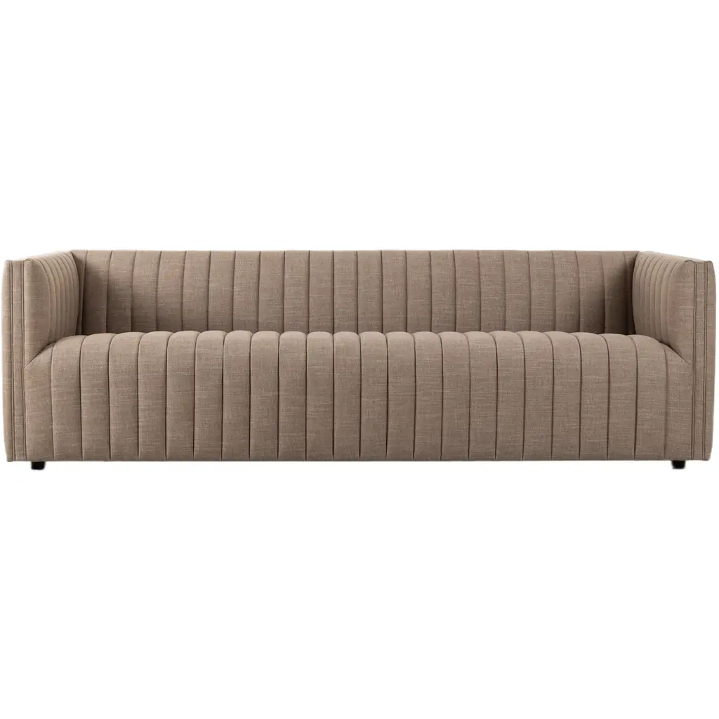 The Vivian Sofa is a masterpiece of design and functionality, featuring a neutral performance fabric that showcases dramatic channeling for a textured and linear aesthetic. This sofa is upholstered in Crypton® performance fabric, which is free of PFAS, making it not only soft and inviting but also easy to maintain. Specially engineered to resist stains, moisture, and odors, the Vivian Sofa is the perfect blend of style and practicality, ensuring it remains a stunning centerpiece in any living space.