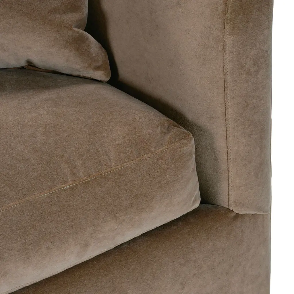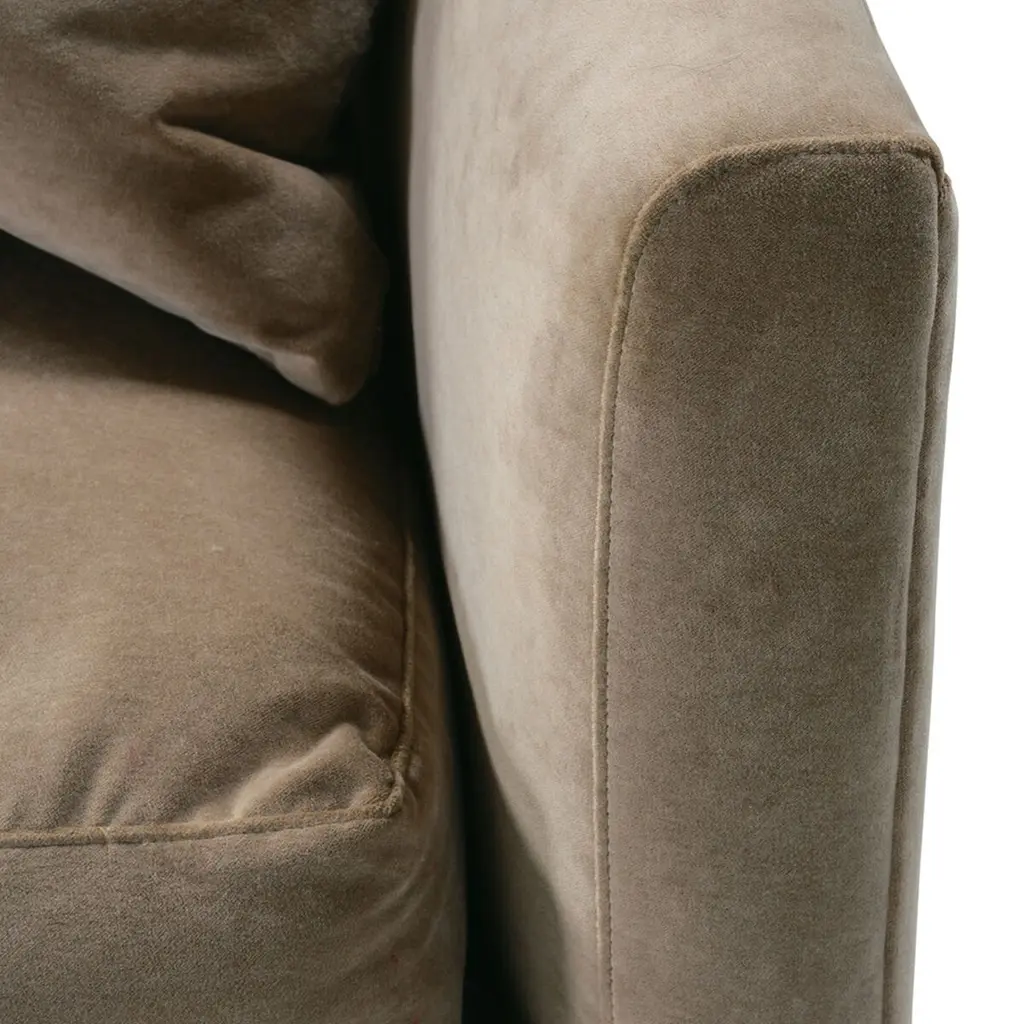 With generous proportions and extra supportive cushions, you’ll sit in both style and comfort in the Vivian Sofa. This chic contemporary piece is made extra luxe with velvet in a soft, sanded finish that gives it the feel of a cherished antique.