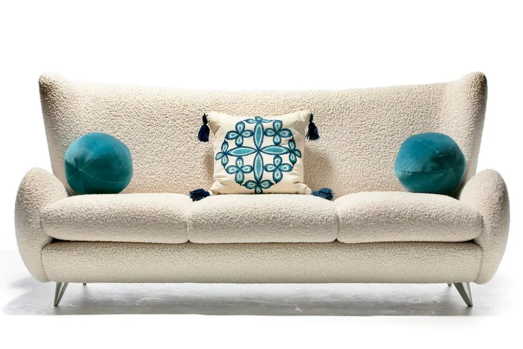 Vladimir Kagan Fiftyish Sofa In Super Soft Ivory White Bouclé