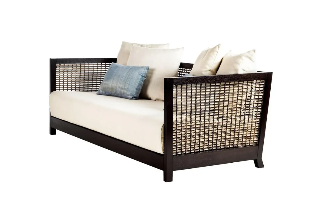 Walnut lowback suzy wong sofa by Kenneth Cobonpue.Materials: Lampakanai, rattan, walnut. Also available in maple. Dimensions: 83 cm x 193 cm x H 64 cmWoven panels create a feeling of intimacy as you and your guests indulge in conversation or tea. The Suzy Wong collection is made of natural materials: abaca, rattan and maple or lampakanai, rattan and walnut.Designer's BiographyKenneth Cobonpue is a multi-awarded furniture designer and manufacturer from Cebu, Philippines. His passage to design began in 1987, studying Industrial Design at the Pratt Institute in New York. While completing his studies, he apprenticed for a leather and wood workshop near Florence, Italy. He went on to study Furniture Marketing and Production at the Export-Akademie Baden-Württemberg in Reutlingen, Germany, under a private and state scholarship program, and subsequently worked in Bielefeld and Munich.Kenneth returned home to Cebu in 1996 to manage Interior Crafts of the Islands, Inc., a furniture design and manufacturing company founded by his mother Betty Cobonpue in 1972. Discovering that modern design could have a new face using natural fibers and materials, Kenneth created pieces of functional art, offering an alternative to the Western definition of modern design. Today, the Kennethcobonpue brand has become known globally for its unique designs and extensive roster of clientele, including Hollywood celebrities and members of royalty.With his masterful way of integrating nature, traditional craft and innovative technologies, designer and creative director Kenneth Cobonpue has earned international awards and recognition for his creative, organic, and expressive pieces. Working closely with some of the world’s leading designers, from household names to emerging talents, Kenneth has been pushing the envelope for design in the Philippines and sharing his vision to a global audience. Awards to his credit include five Japan Good Design Awards, the grand prize at Singapore International Design Competition, the Design for Asia Award of Hong Kong, the American Society of Interior Design Top Pick selection and the French Coup de Coeur award. Several of his designs were selected for several editions of the International Design Yearbook published in London and New York. Phaidon’s book entitled “& FORK” underscores Kenneth’s position as a leader of a new movement incorporating new technologies with crafts. In 2007, TIME magazine called him “rattan’s first virtuoso”. Kenneth was named the Designer of the Year in the first edition of Maison et Objet Asia held in March 2014 in Singapore.Kenneth reveals new work each year in the design shows from Milan to New York, and he speaks regularly about Southeast Asian design all over the world. He has also appeared in European television and in countless international magazines and newspapers around the world. Various Cobonpue designs have also appeared in full-length feature films and television, such as Oceans 13 and CSI.