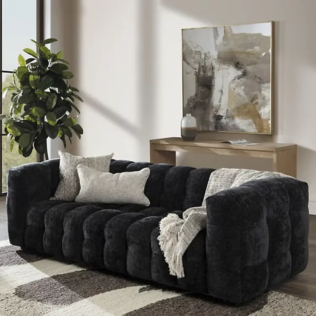 The Walter Sofa from Classic Home blends retro glam with modern durability, making it a sophisticated statement for any living space. Crafted with enhanced construction for lasting comfort, it features neutral polyester upholstery with crisp biscuit tufting, adding texture and depth. Its posh aesthetic complements a variety of interiors, from classic to contemporary. Perfect for refined spaces, this elegant sofa offers both style and practicality, enhancing your home with luxurious charm.