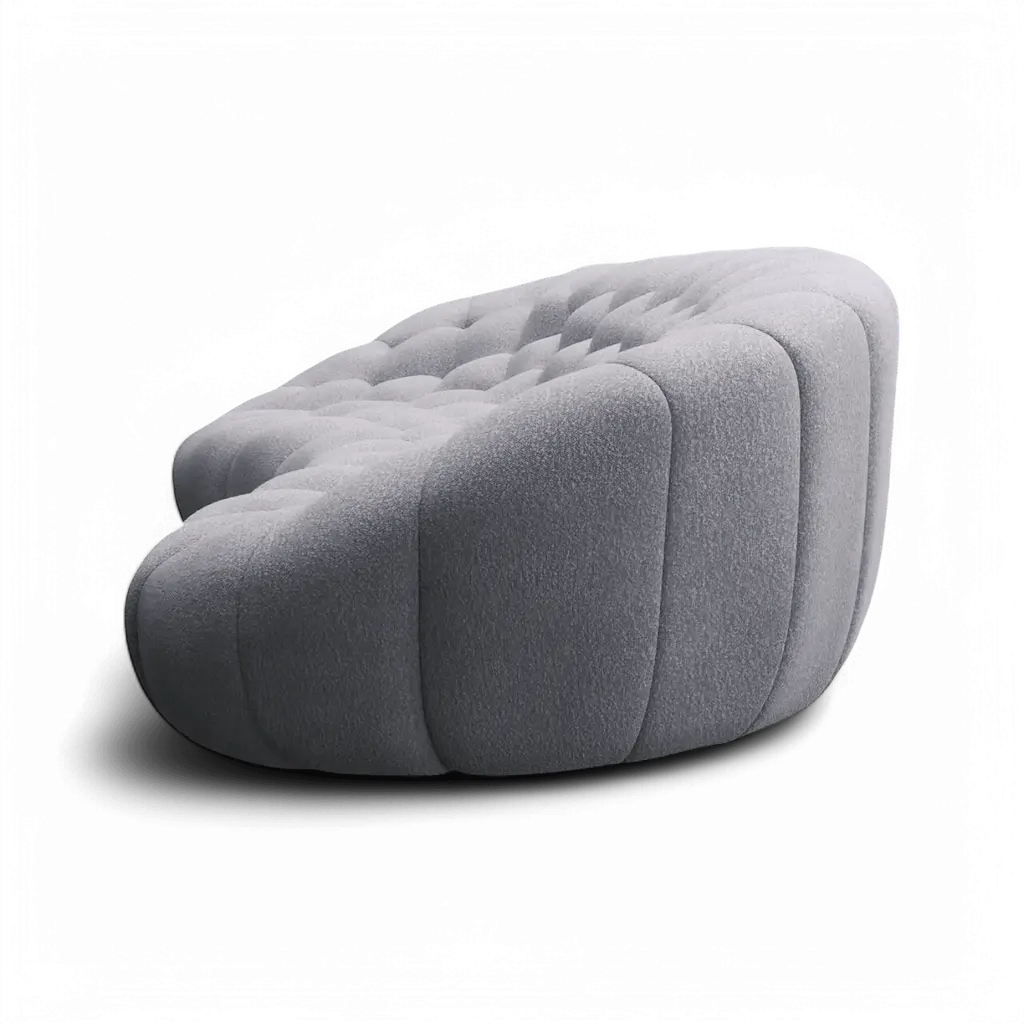 Bring a pop of color and style to your space with the Warby Three-Seater Sofa in Grey Bouclé. This piece marries contemporary design with timeless comfort, featuring a beautifully tufted, curved form wrapped in rich grey bouclé fabric. Ideal for adding a touch of luxury to your living room, the Warby sofa’s distinctive shape and lush texture make it the centerpiece of any decor, whether eclectic or classic.