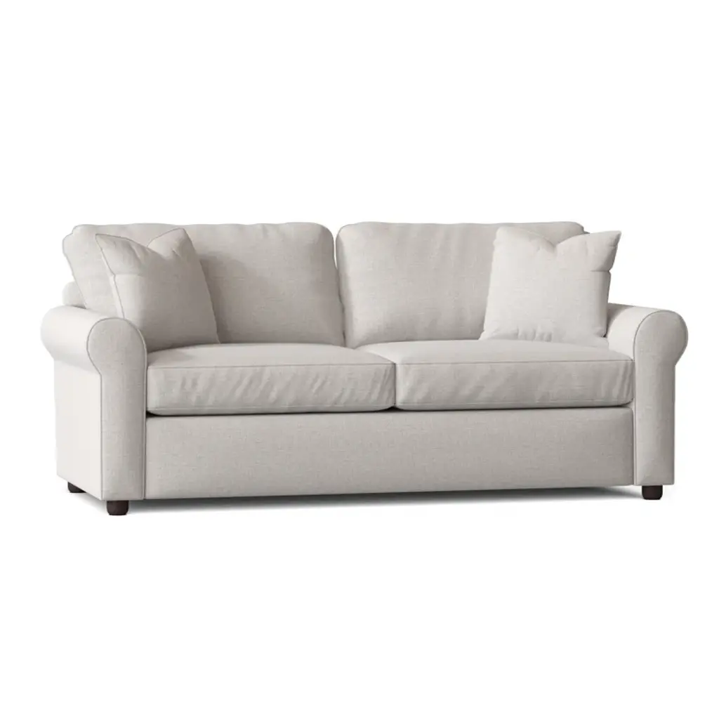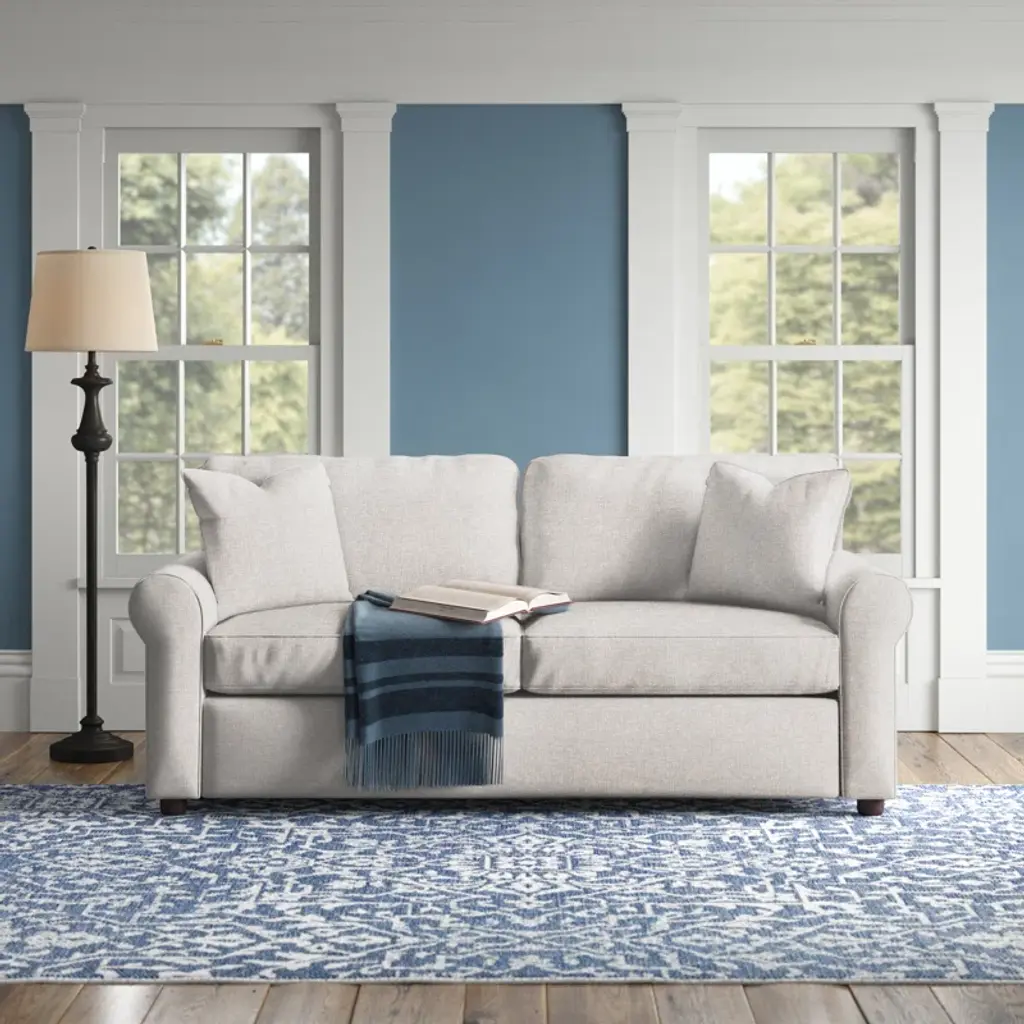 This 82" wide sofa is an inviting spot for playing board games with the family or curling up for movie night. It's made with a solid and engineered wood frame and upholstered with the fabric of your choice. Made in the USA, this sofa features rolled arms and foam-filled cushions to support you while you relax. Plus, its cushions are removable, so they're easy to vacuum, and they even come in removable cushion covers. Two toss pillows are included. Choose from a variety of fabrics to create a traditional or coastal look in your home.