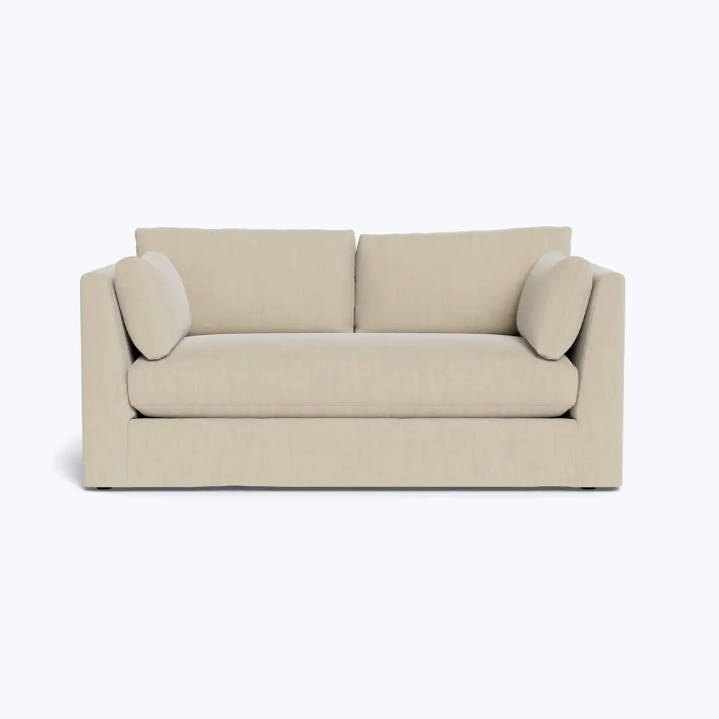 Sink into cozy comfort with the Watermill Slipped Bench Seat Sofa, an exclusive offering from abc carpet & home. With its modern, clean-lined design and a choice of over 35 slipcover options, this sofa offers divine relaxation fit for any space. Designed with smaller living rooms, studios, and compact professional spaces in mind, the Watermill Sofa boasts a shape that perfectly suits apartment living while still providing ample room to lounge comfortably. Whether you're hosting guests or simply unwinding after a long day, this sofa ensures a cozy retreat in any setting. At the heart of the Watermill Collection lies its blend-down cushions, crafted from a mix of dense foam and feather down that's washed to meet hypoallergenic regulations. The result is a perfect combination of support and softness, inviting you to sink in and relax. Crafted with a sustainably sourced Goodwood frame, this exclusive slipcover sofa reflects Cobble Hill's commitment to eco-consciousness and quality craftsmanship. Measuring 74 inches in width, 38 inches in depth, and 33 inches in height, with a seat height of 17 inches and a seat depth of 24 inches, the Watermill Sofa offers generous proportions for lounging and relaxing. Its back and arm height of 30 inches ensures optimal support and comfort. Proudly made in the USA, each piece in the Cobble Hill collection reflects a commitment to quality craftsmanship and ethical manufacturing practices. To preserve its pristine condition, spot clean with mild detergent and opt for professional cleaning as needed. Regular vacuuming helps maintain its plush appearance, ensuring lasting beauty for years to come. Transform your living space into a cozy retreat and create memories that will last a lifetime with the Watermill Slipped Bench Seat Sofa from Cobble Hill.
