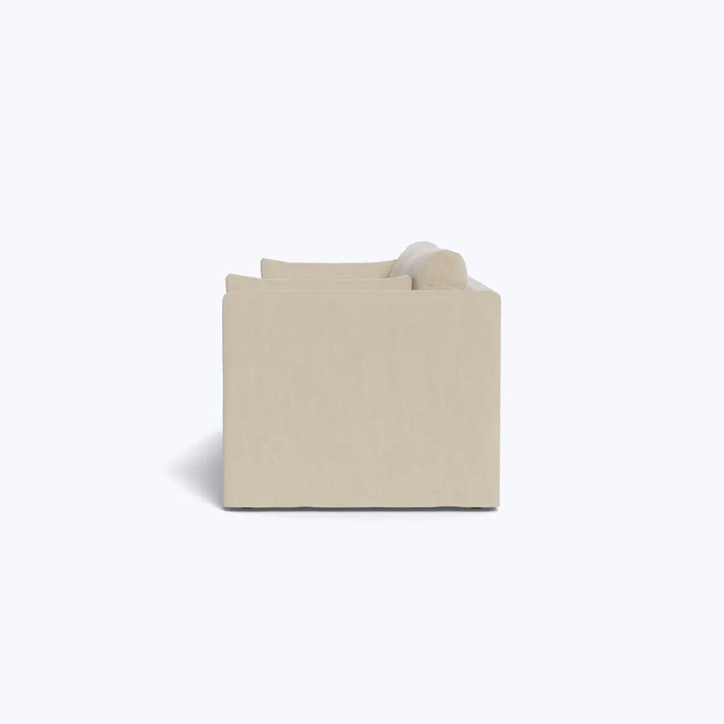 Sink into cozy comfort with the Watermill Slipped Bench Seat Sofa, an exclusive offering from abc carpet & home. With its modern, clean-lined design and a choice of over 35 slipcover options, this sofa offers divine relaxation fit for any space. Designed with smaller living rooms, studios, and compact professional spaces in mind, the Watermill Sofa boasts a shape that perfectly suits apartment living while still providing ample room to lounge comfortably. Whether you're hosting guests or simply unwinding after a long day, this sofa ensures a cozy retreat in any setting. At the heart of the Watermill Collection lies its blend-down cushions, crafted from a mix of dense foam and feather down that's washed to meet hypoallergenic regulations. The result is a perfect combination of support and softness, inviting you to sink in and relax. Crafted with a sustainably sourced Goodwood frame, this exclusive slipcover sofa reflects Cobble Hill's commitment to eco-consciousness and quality craftsmanship. Measuring 74 inches in width, 38 inches in depth, and 33 inches in height, with a seat height of 17 inches and a seat depth of 24 inches, the Watermill Sofa offers generous proportions for lounging and relaxing. Its back and arm height of 30 inches ensures optimal support and comfort. Proudly made in the USA, each piece in the Cobble Hill collection reflects a commitment to quality craftsmanship and ethical manufacturing practices. To preserve its pristine condition, spot clean with mild detergent and opt for professional cleaning as needed. Regular vacuuming helps maintain its plush appearance, ensuring lasting beauty for years to come. Transform your living space into a cozy retreat and create memories that will last a lifetime with the Watermill Slipped Bench Seat Sofa from Cobble Hill.