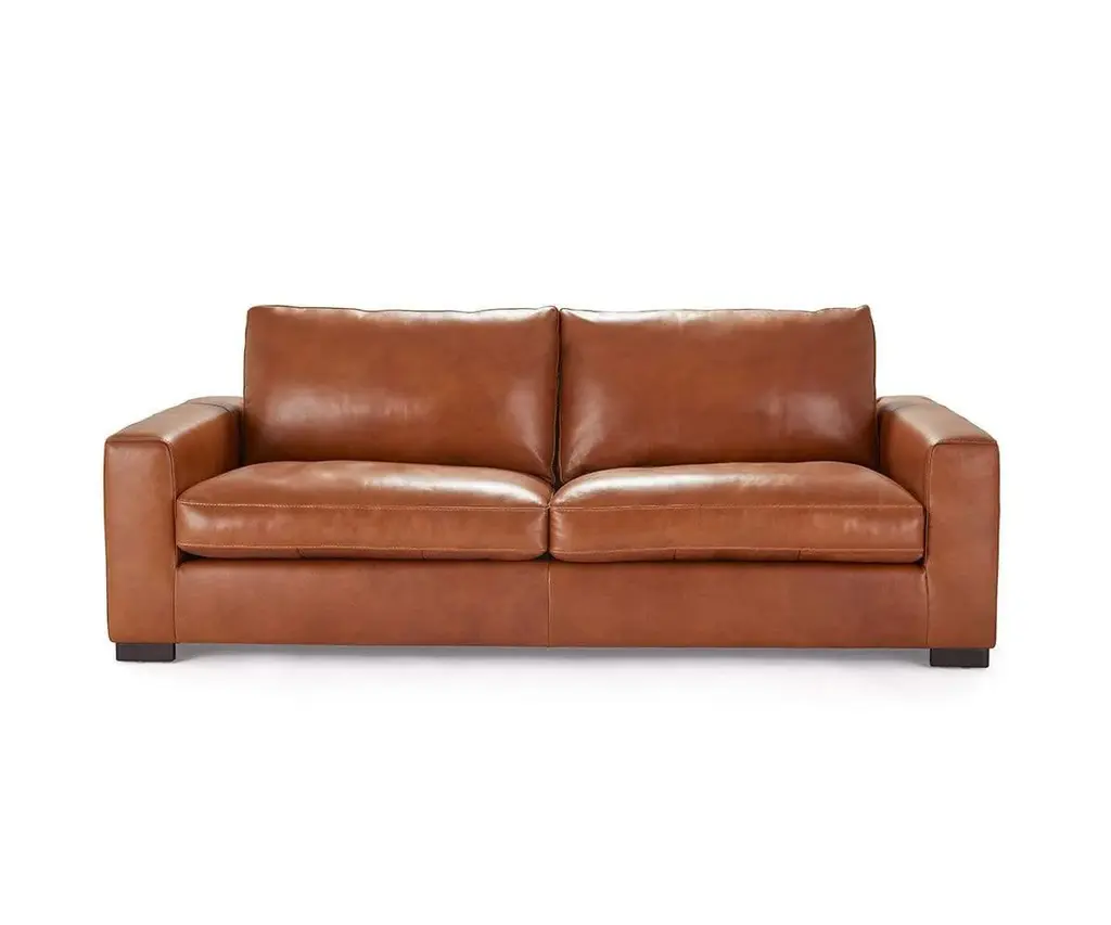 Inspired by vintage '70s seating and plush duvet toppers, this structured, supportive sofa is covered in a subtly distressed thick-cut leather. Ships In 10-14 Business Days Top grain leather This image is for illustrative purposes only. The colors shown are accurate within the constraints of lighting, photography, and the color accuracy of your screen.