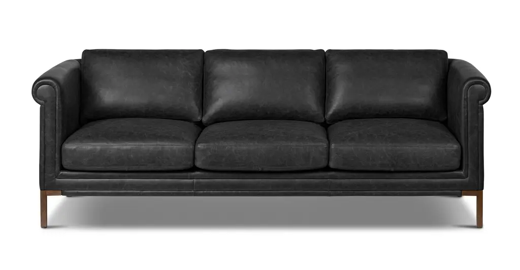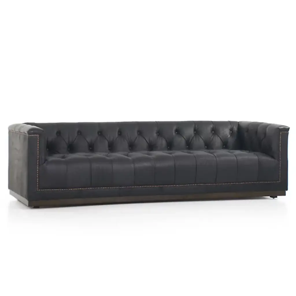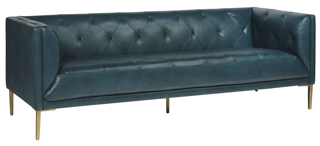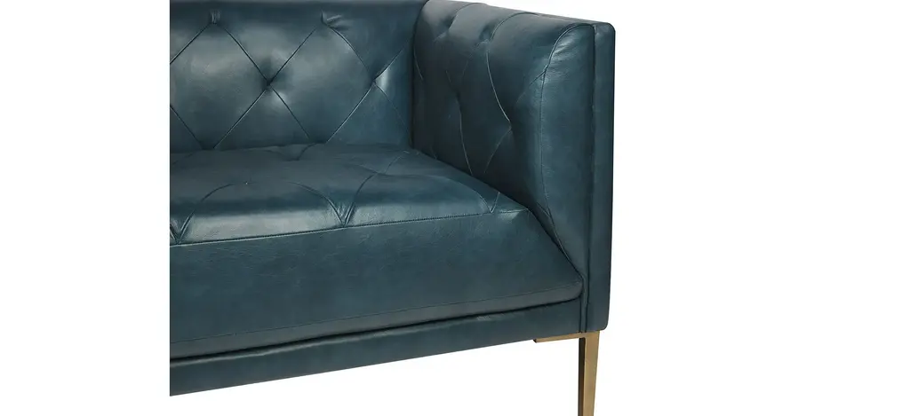 This classically framed Westin Sofa will create an elevated transitional mood in various living and lounge spaces, and features diamond tufting and antique brass feet for a timeless look. Handle with Care: This design has been crafted with top grain leather. Leather is a natural material; as such, colour variations, markings, wrinkles, grooves and light scratches are acceptable and appreciated characteristics. No two pieces are alike.