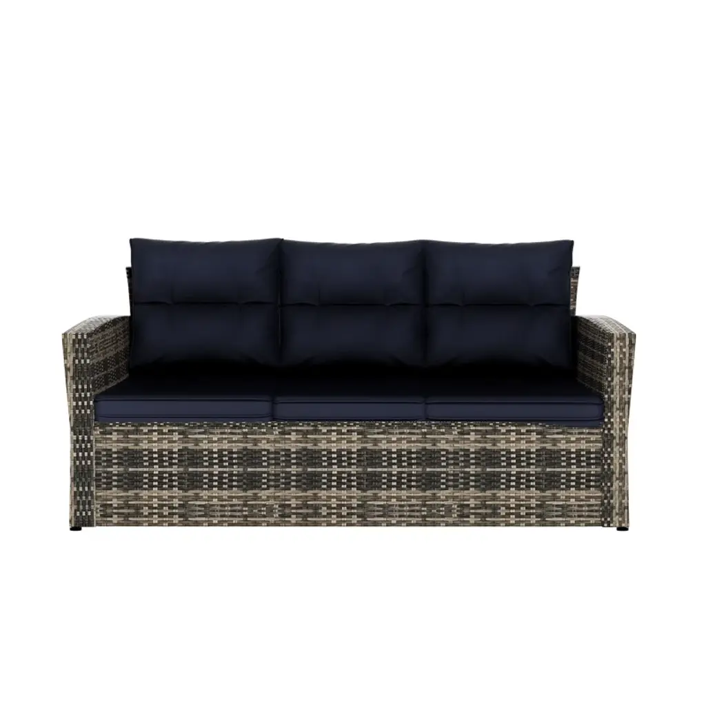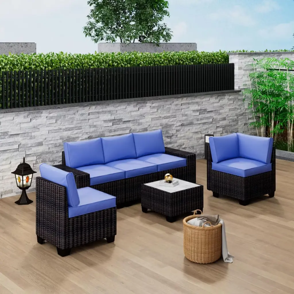 Westintrends 6-piece Pe Rattan Wicker Outdoor Patio Conversation Sofa Set, Brown/navy Blue