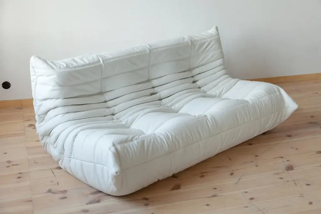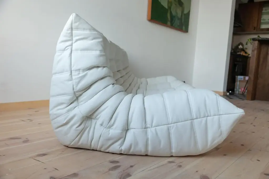 White Leather Togo 3-Seater Sofa By Michel Ducaroy For Ligne Roset