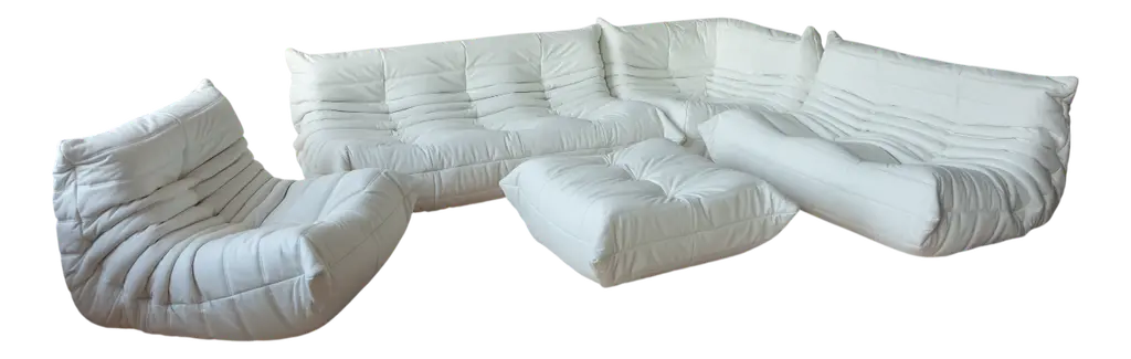 This Togo has been reupholstered with new foam and high-quality new fabric, keeping its inner structure giving the item its classic form Kindly note the Following regarding this listing - In the case a natural material is used for upholstery, there might be variations in the dye or colour hue. The material used for reupholstery is not original Ligne Roset - As this Togo is reupholstered on demand, the manufacturing time will be between 3-4 weeks - When Togos are reupholstered the vendor is not permitted to reaffix the original label - All Togo measurements for reference: 3-seater Height: 70 cm / Seat Height 38 cm / Width 172 cm / Depth 102 cm 2-seater Height: 70 cm / Seat Height: 38 cm / Width 131 cm / Depth: 102 cm Corner Chair Height: 70 cm / Seat Height: 38 cm / Width: 87 cm / Depth 102 cm Single item Chair Height: 70 cm / Seat Height: 38 cm / Width: 87 cm / Depth: 102 cm Ottoman/Pouf - Height: 34 cm / Seat Height: 38 cm / Width: 87 cm / Depth: 80 cm This piece is attributed to the mentioned designer/maker. It has no attribution mark and no official proof of authenticity, however it is well documented in design history. I take full responsibility for any authenticity issues arising from misattribution
