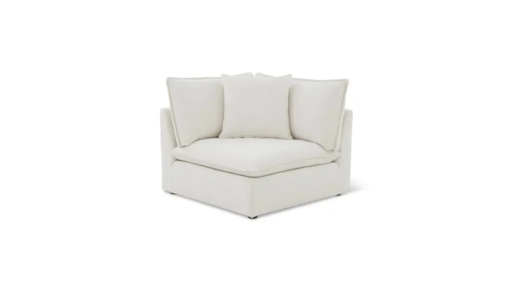 Introducing the White Linen Right Corner Sofa by Vical Home Virolle. Sink into luxury with this exquisite piece, crafted from the finest white linen. Perfect for adding a touch of sophistication and elegance to any living space. Transport yourself to a world of refined taste with the Virolle sofa.