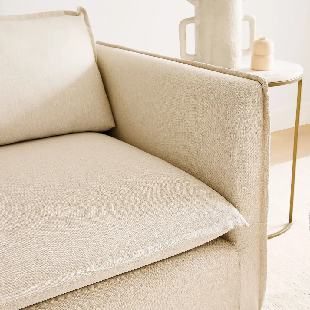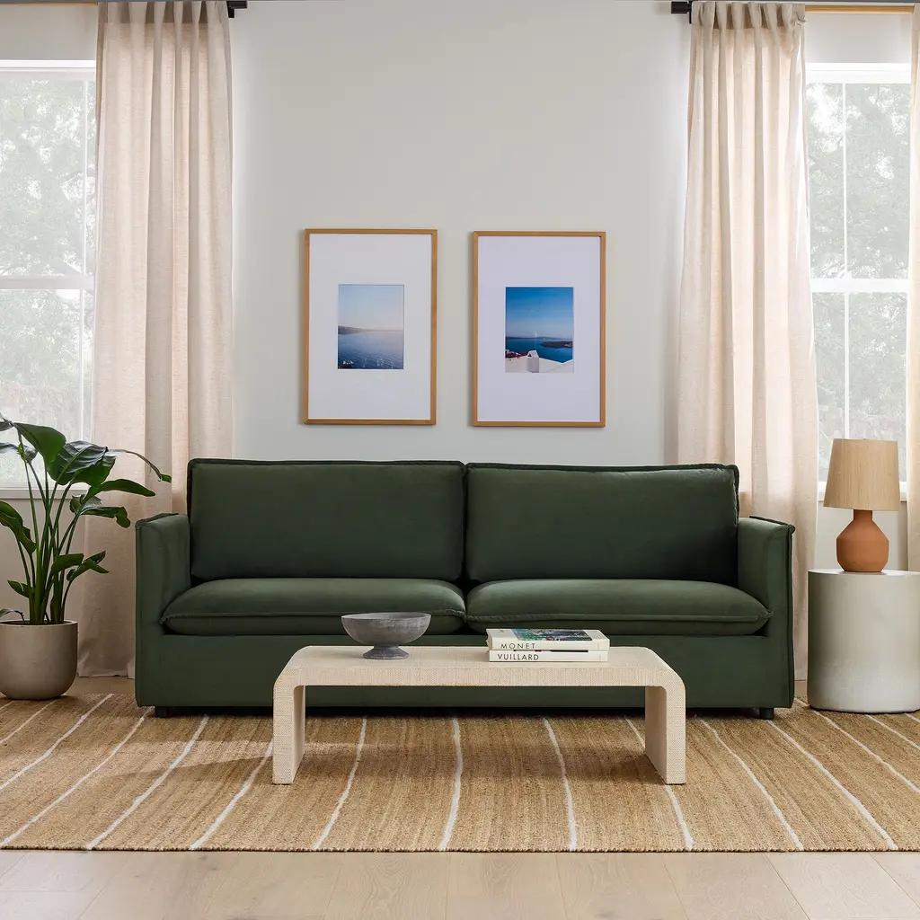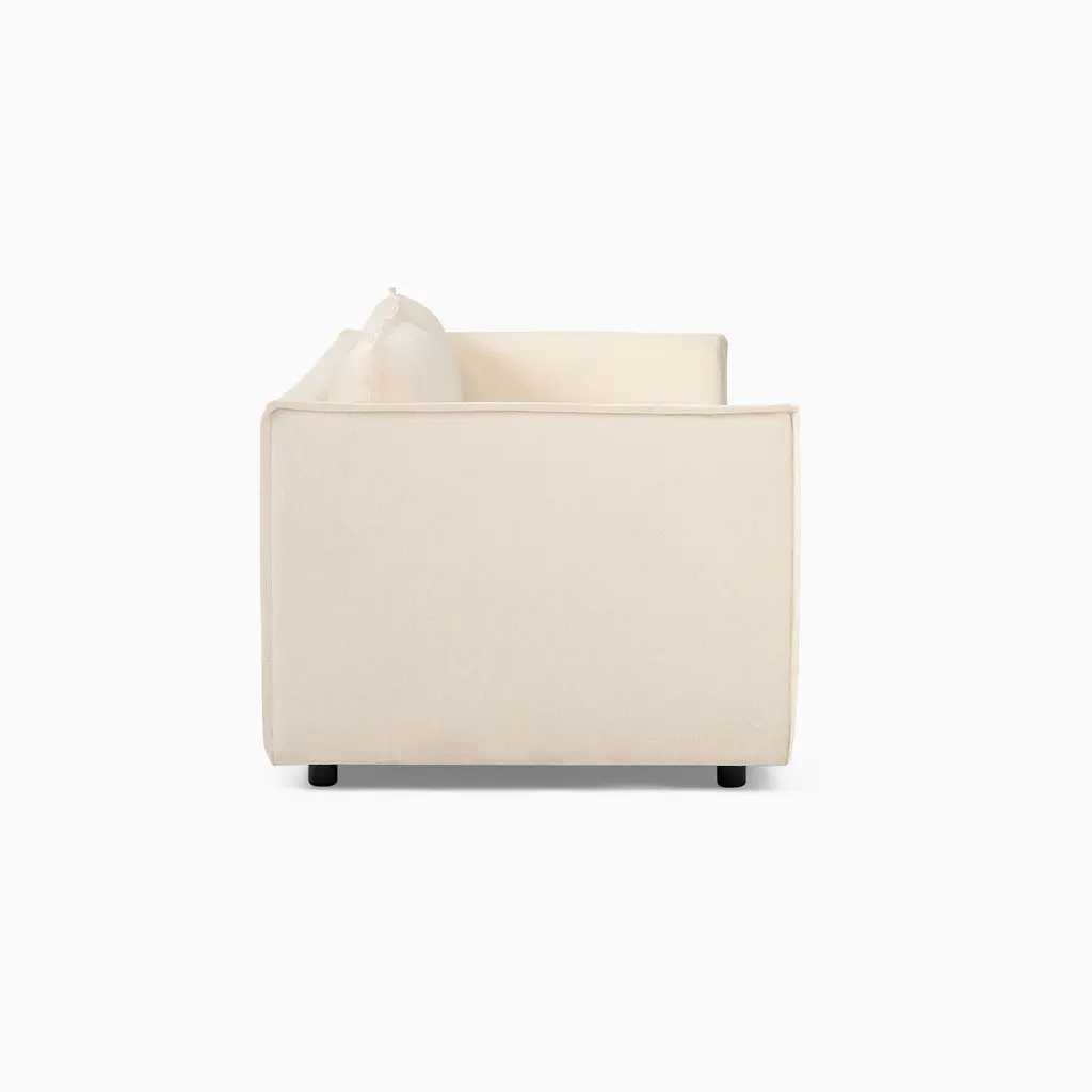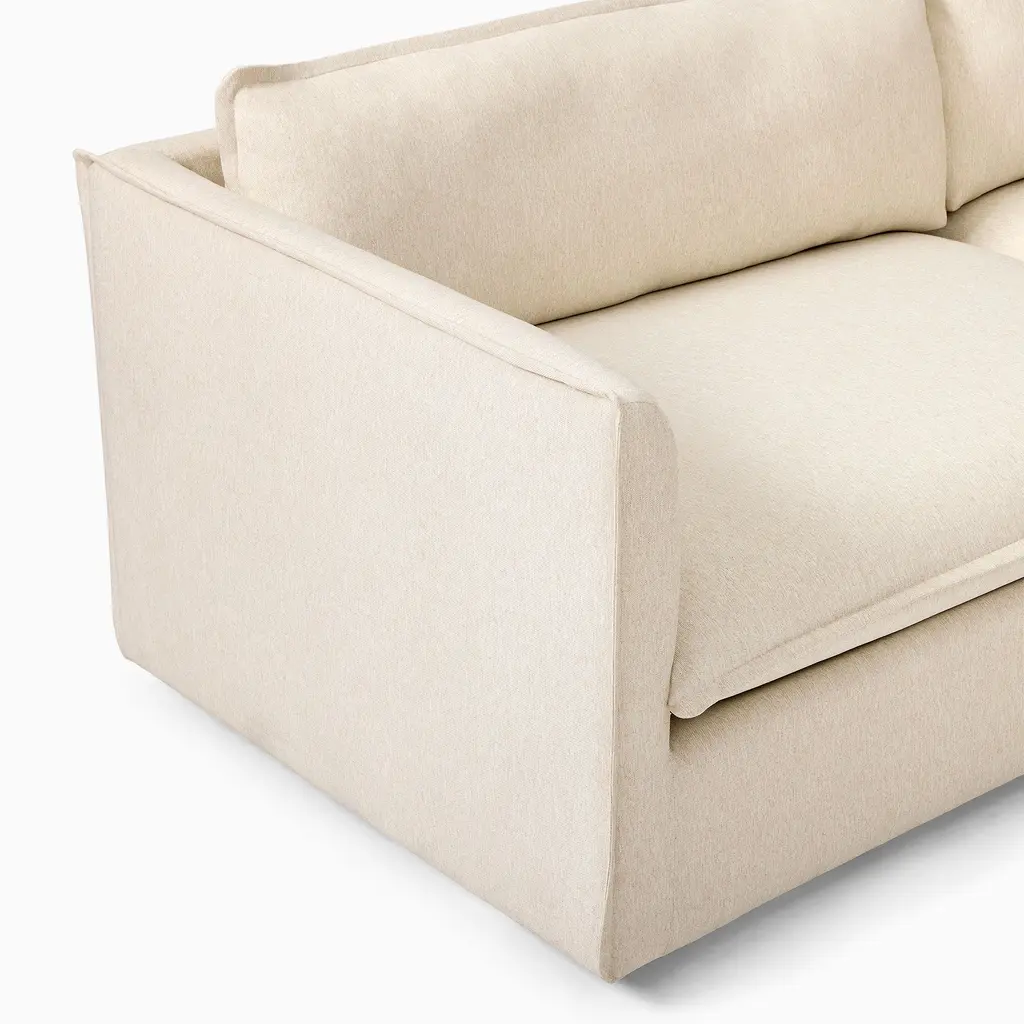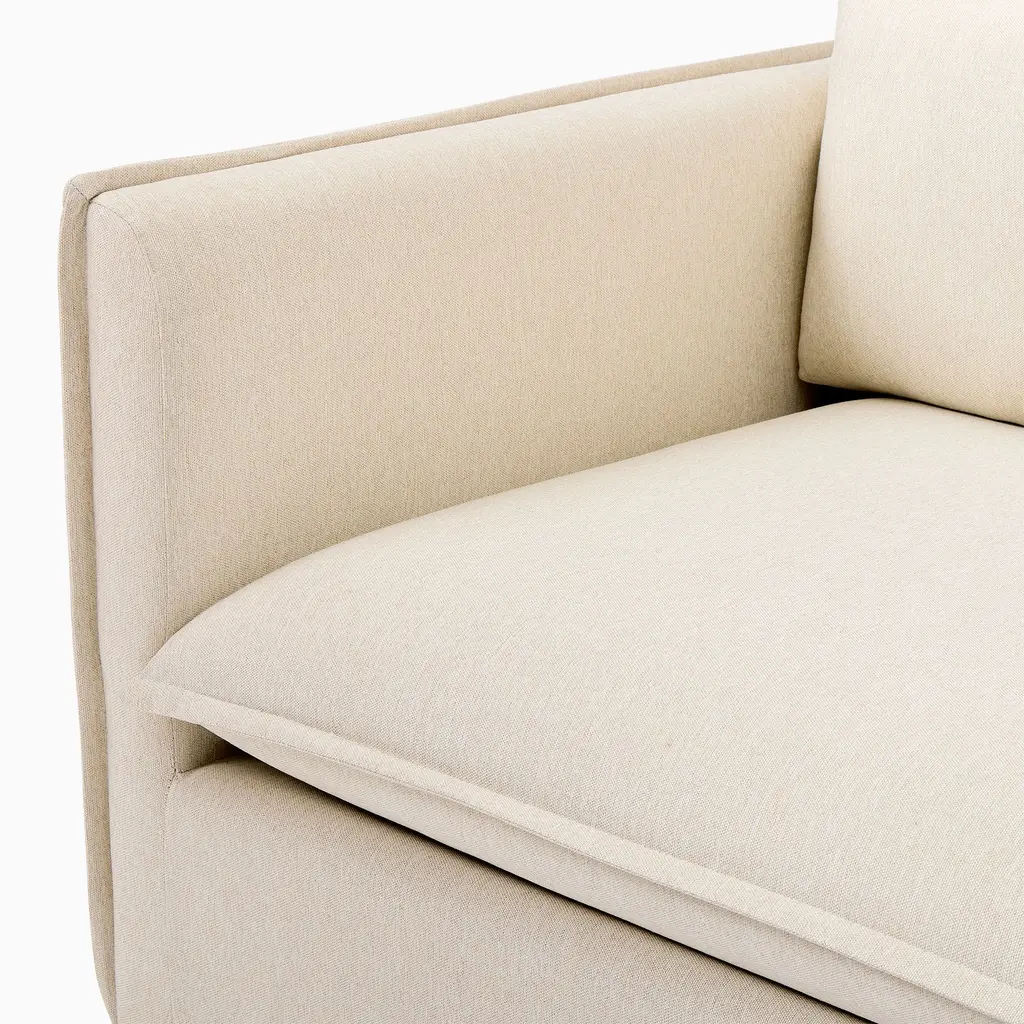 Track arms and flanged edges enhance its streamlined profile. Deep, wide seat perfect for guests to gather. Covered in your choice of stylish upholstery. Contract Grade, so you know it's built to last.