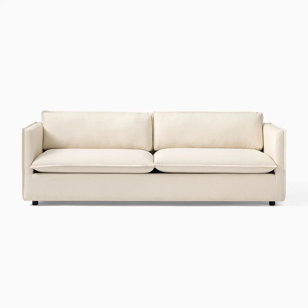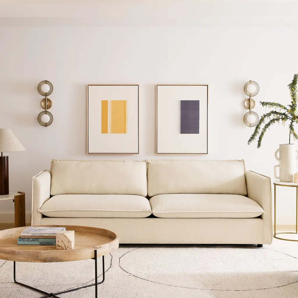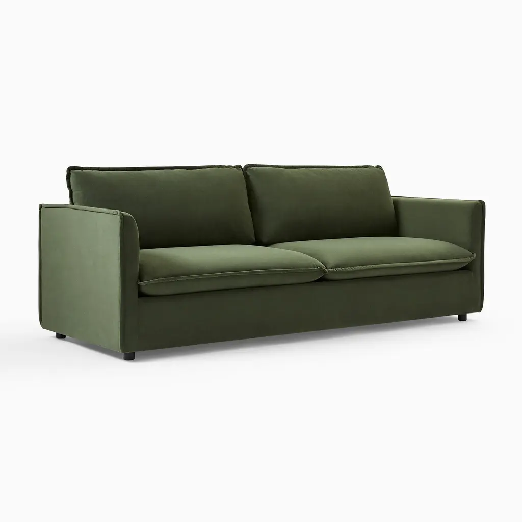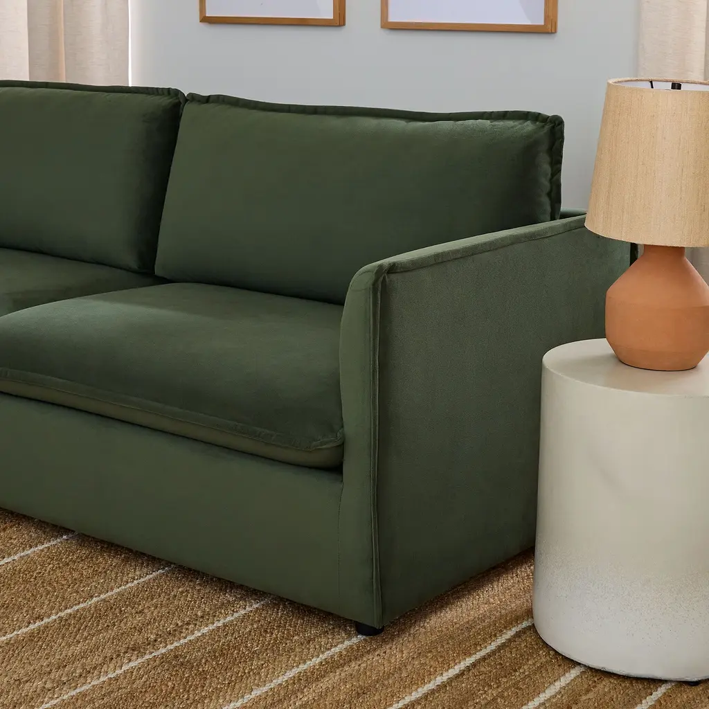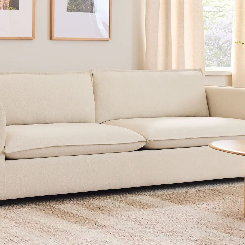 Track arms and flanged edges enhance its streamlined profile. Deep, wide seat perfect for guests to gather. Covered in your choice of stylish upholstery. Contract Grade, so you know it's built to last.