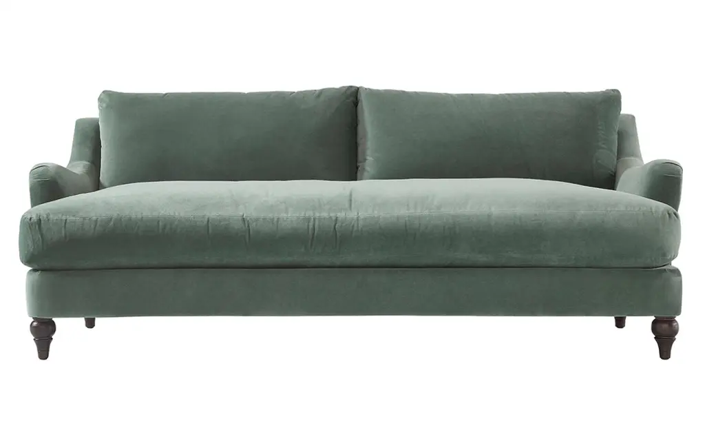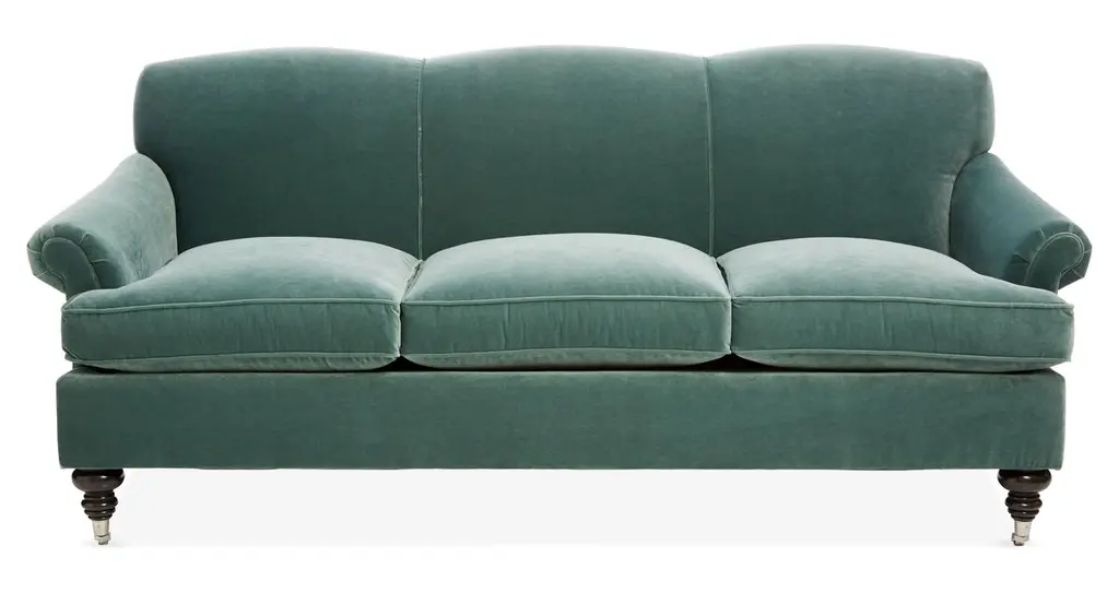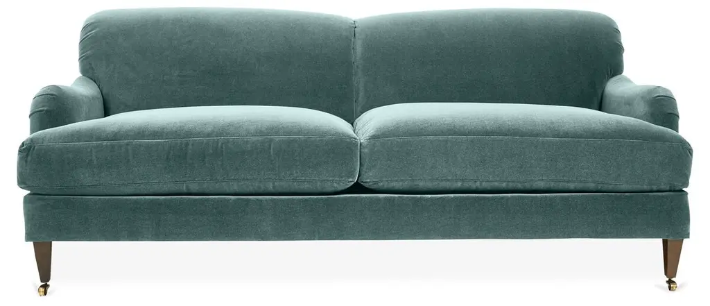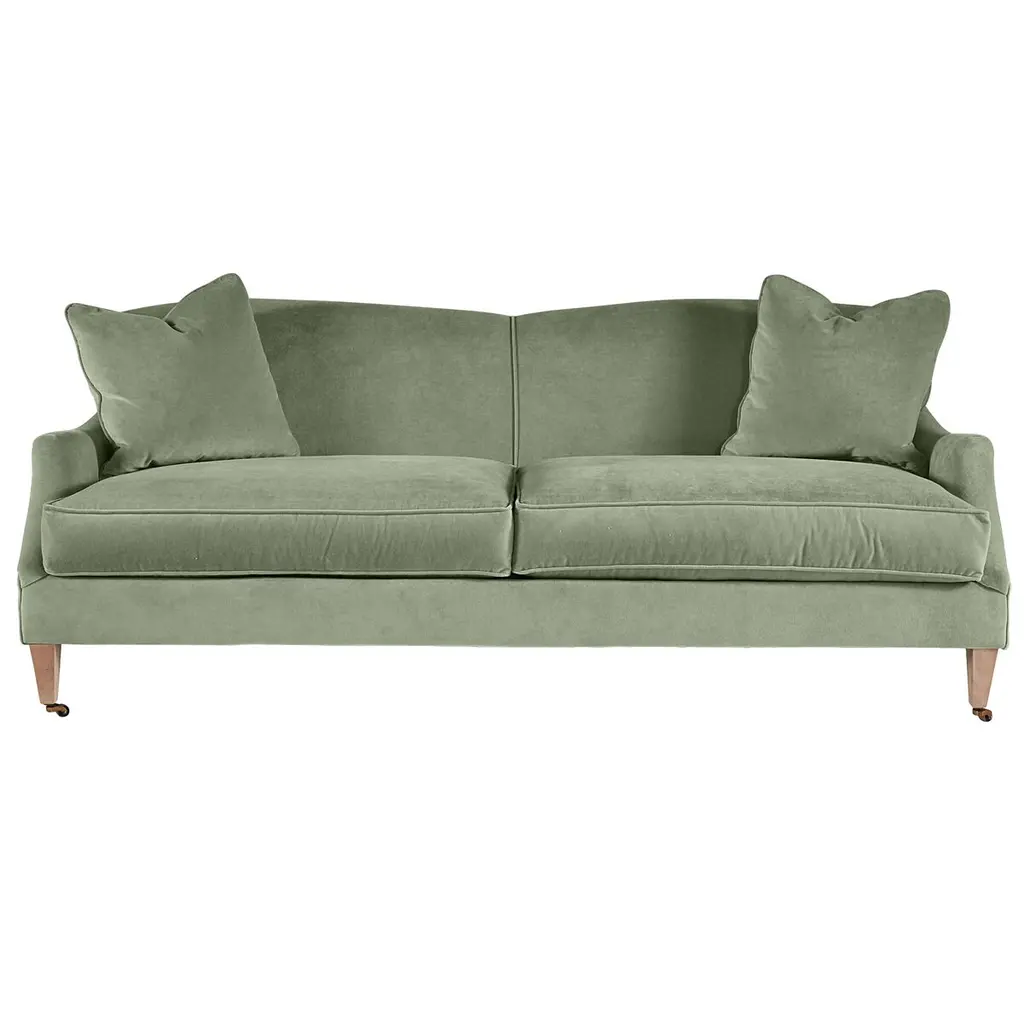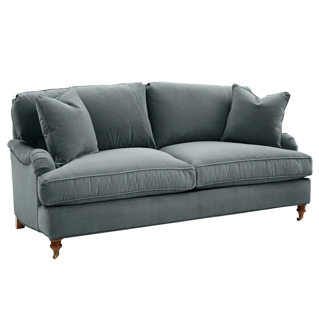 A Kathy Kuo Home exclusive, our 81” Willett sofa feels timeless and fresh, a perfect transitional piece for living rooms of any style. Turned wood legs and sloped, gently rounded arms add a charming, nostalgic feel, while the elongated bench seat offers a clean, sophisticated look. We designed Willett with a custom cushion fill—hypoallergenic Trillium® fiber holds its shape and offers all the comfort of down without the fluffing maintenance.