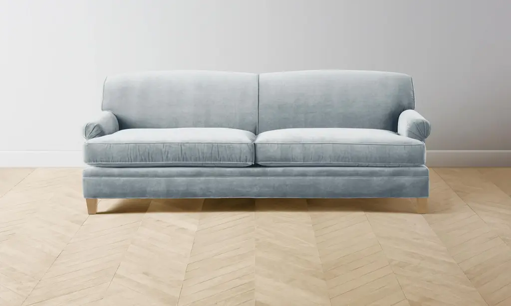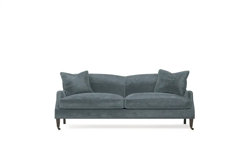 A Kathy Kuo Home exclusive, our 81” Willett sofa feels timeless and fresh, a perfect transitional piece for living rooms of any style. Turned wood legs and sloped, gently rounded arms add a charming, nostalgic feel, while the elongated bench seat offers a clean, sophisticated look. We designed Willett with a custom cushion fill—hypoallergenic Trillium® fiber holds its shape and offers all the comfort of down without the fluffing maintenance.