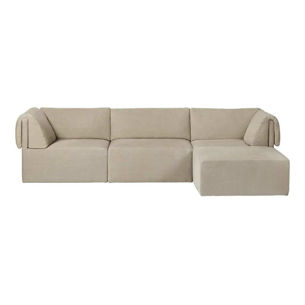 The Wonder Sofa is a contemporary reinterpretation of 1970s lounge furniture by Space Copenhagen for GUBI. Its designers have updated the informal, generous and playful nature of the original modular sofa with an elegant and simple frame. The Wonder Sofa brings the relaxed and approachable feel of home to a hotel or lobby, or a touch of sophistication to a private residence. Endless combinations of the Wonder Sofaâ€s 3 modules enable it to adapt to users†changing needs. As a freestanding piece, in groups, back-to-back, side-to-back or in rows, the Wonder Sofaâ€s distinctive design enchants from every angle. The Wonder Sofaâ€s plump cushions are softly folded over the clean, square lines of the backrest and attached with the ingenious feature of hidden magnets. This softens the relationship between front and back and creates a sense of relaxed sophistication and comfort in which playful exuberance meets measured simplicity.