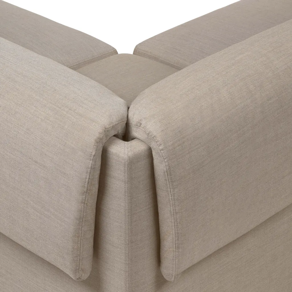 With just 3 easy pieces, the designers at Space Copenhagen provide a stylish update on lounge-worthy modular furnishings of the '70s. Endless combinations are possible with Wonder Sofa’s corner, armless midsection and ottoman pouffe—as well as placement as freestanding units, in groups and back-to-back or side-to-back. Agreeably informal, generous and even playful, the seating combines an elegantly sleek frame with a softly folded backrest cushion with its plump padding of duck feathers and foam particle. Ingeniously secured with magnets for a casual but neat appearance, the plush profile exudes comfort and softens the relationship between the front and back. Along with the ergonomic considerations, the sections are generously scaled for further ease and available with either fixed or removable covers in a wide selection of upholstery options and a choice of seam finishing detail.