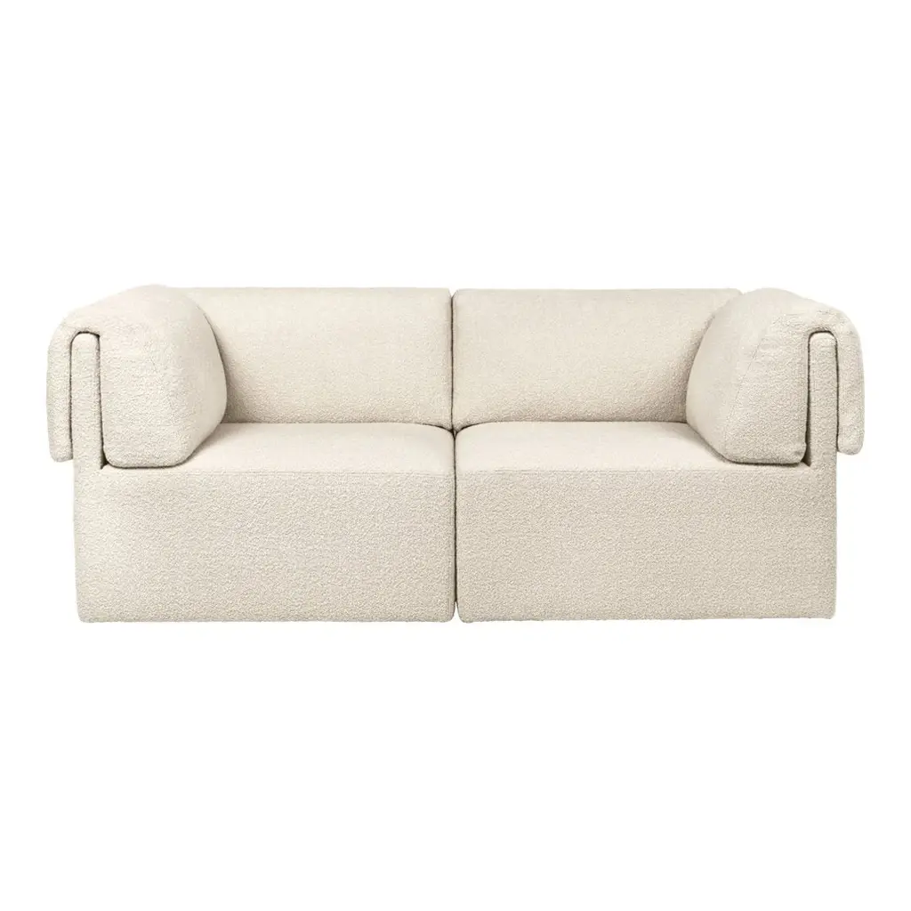 The Wonder Sofa is a contemporary reinterpretation of 1970s lounge furniture by Space Copenhagen for GUBI. Its designers have updated the informal, generous and playful nature of the original modular sofa with an elegant and simple frame. The Wonder Sofa brings the relaxed and approachable feel of home to a hotel or lobby, or a touch of sophistication to a private residence. Endless combinations of the Wonder Sofaâ€s 3 modules enable it to adapt to users†changing needs. As a freestanding piece, in groups, back-to-back, side-to-back or in rows, the Wonder Sofaâ€s distinctive design enchants from every angle. The Wonder Sofaâ€s plump cushions are softly folded over the clean, square lines of the backrest and attached with the ingenious feature of hidden magnets. This softens the relationship between front and back and creates a sense of relaxed sophistication and comfort in which playful exuberance meets measured simplicity.