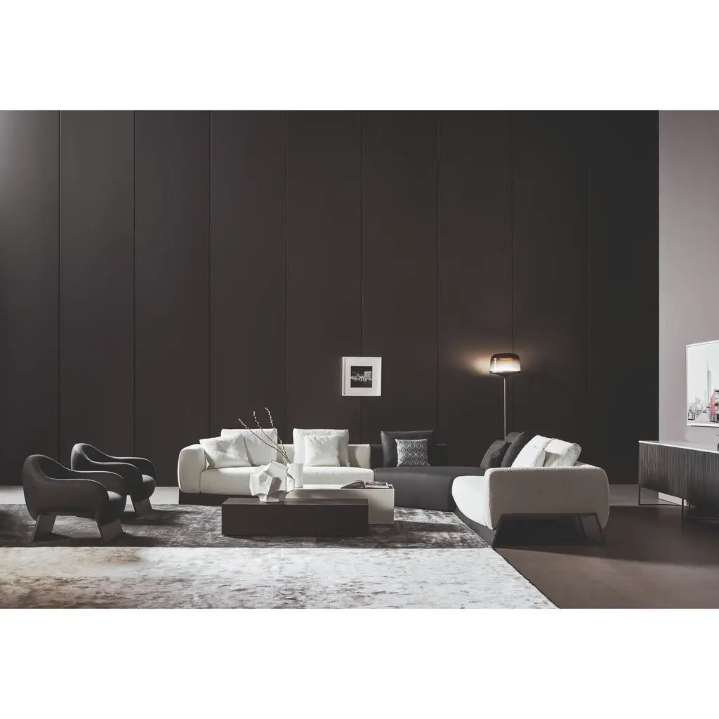 Conceived by designer Giuseppe Viganò, the Boolean sofa challenges the traditional canons of contemporary design thanks to a harmonious fusion between an enveloping style and a linear silhouette that captures the attention. Boolean is much more than a simple furnishing accessory: it is a timeless oasis of style and comfort, capable of transforming a living space into an environment of pure relaxation. Its aesthetics stand out thanks to the essential nature of the shapes, expertly enhanced through games of intersections that give the soft and enveloping seating space a touch of personality and innovation. But what makes the Boolean Sofa truly unique is the heart of its frame: a bridge base available in Canaletto walnut or coal oak which crosses the upholstery longitudinally, modulating its volume to enhance its character and strong theatrical presence. This creation represents a synthesis of technical virtuosity that puts the emphasis on detail right from the design phase, all interpreted and executed with Bonaldo's hallmark craftsmanship.