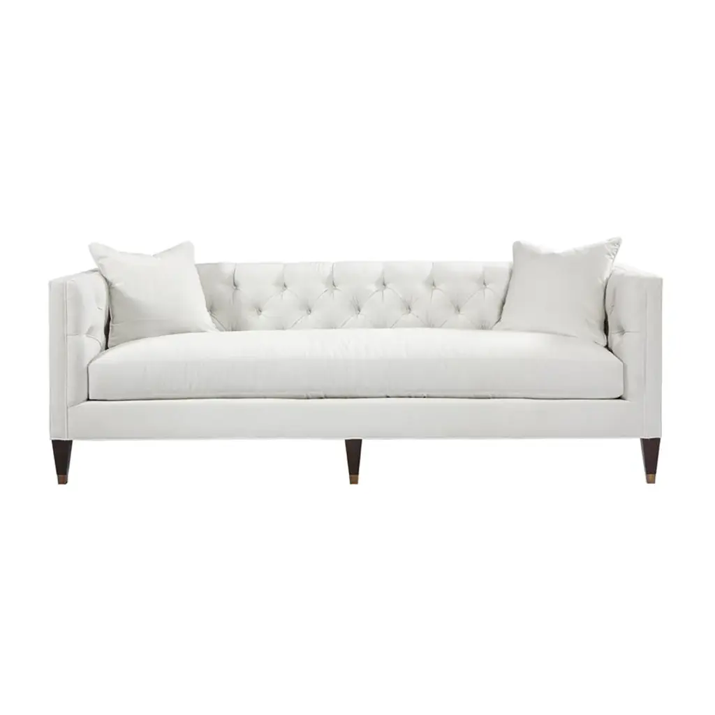 The Wright collection also includes a loveseat (sold separately). Ships In 8-10 Weeks Ferrules on legs Two 22" square throw pillows Tufted back and inside arms One bench cushion As Shown Fabric: Limestone Grey As Shown Finish: Modern Elm If you choose to purchase COM, once you have placed your order a customer service rep will contact you regarding where to send your fabric. Please note that current lead time is 17-19 weeks once your fabric arrives at the factory, and if unused fabric is under 1.5 yards, it cannot be sent back to you.This product can be special ordered in additional fabrics, leathers, finishes, and cushion fillings. Click here to email us for for additional information about special ordering.This image is for illustrative purposes only. The colors shown are accurate within the constraints of lighting, photography, and the color accuracy of your screen.
