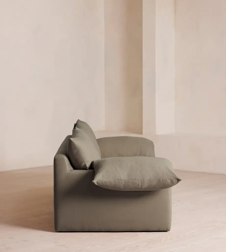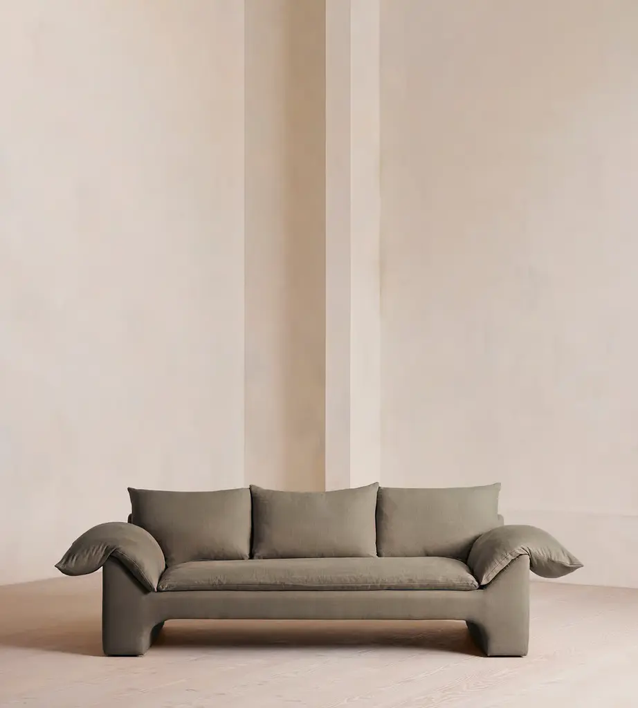A three-seater style characterised by a floating plinth base and rich velvet upholstery. Inspired by the interiors of Soho Warehouse, the Wyatt sofa is defined by its sloped, cushioned arms and a floating plinth base. With space to sit three, this style still works for both small and larger living spaces.
