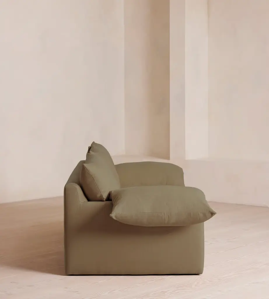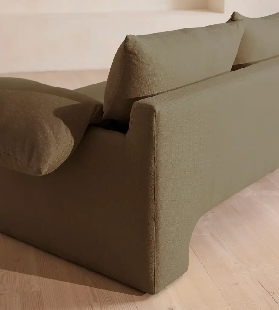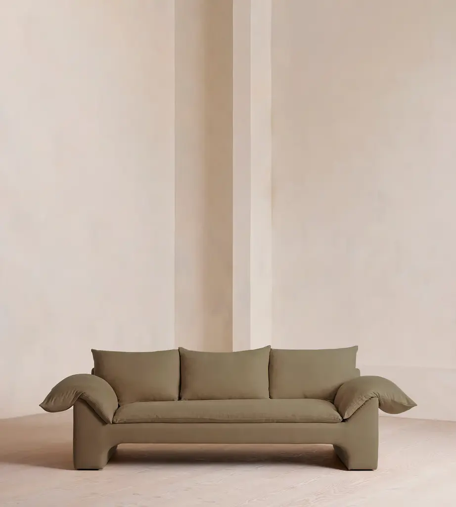 A three-seater style characterised by a floating plinth base and rich velvet upholstery. Inspired by the interiors of Soho Warehouse, the Wyatt sofa is defined by its sloped, cushioned arms and a floating plinth base. With space to sit three, this style still works for both small and larger living spaces.