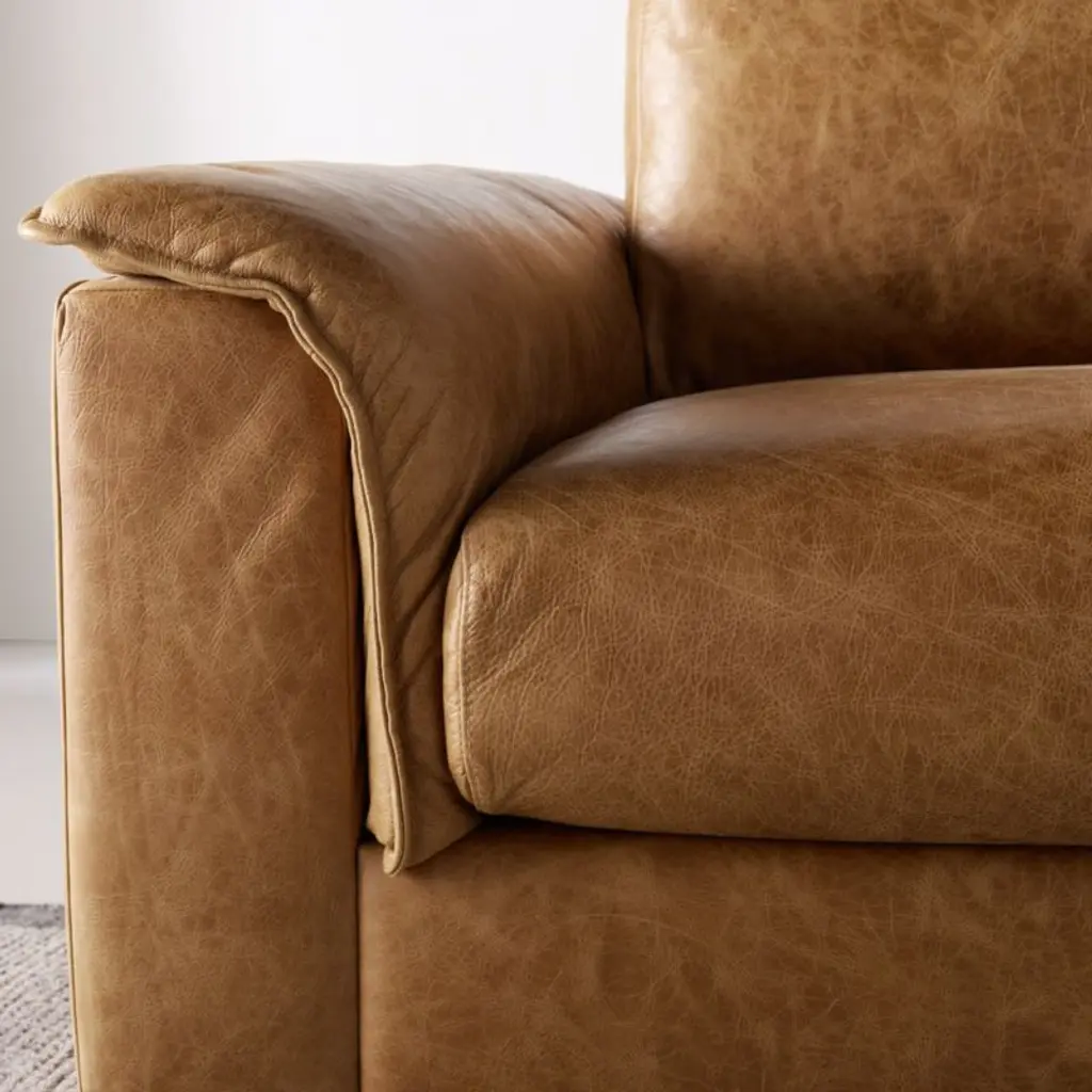 Channeling the glamour of swanky clubs and luxe hotel lobbies, our vintage-inspired Wythe sofa indulges with sink-in cushions and silky leather. Sink-in cushions and wide armrests draped with duvet-like pillows give the generously proportioned sofa its casual, lived-in feel-an appearance enhanced by the rustic appeal of the leather upholstery. Oil used in the tanning process gives the honey brown leather rich tonal highlights and a buttery hand. Sophisticated yet familiar, our heirloom-quality Wythe sofa will only get better with time.By choosing FSC®-certified furniture, you are supporting responsible management of the world's forests.