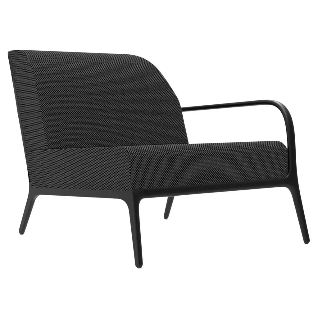Xaloc left 90 gold modular sofa by mowee dimensions: d100 x w90 x h81 cm (seat height 42 cm) material: aluminium, textile weight: 25 kg also available in different colors and finishes. Xaloc synthesizes the lines of interior furniture to extrapolate to the exterior, creating an elegant and versatile collection that can coexist in both contexts. The textile of its elements also want to represent this concern to provide the exterior with the warmth of the interior furniture. The name xaloc comes from the wind with the same name. A strong wind typical of the mediterranean area. A wind capable of eroding the environment it meets.