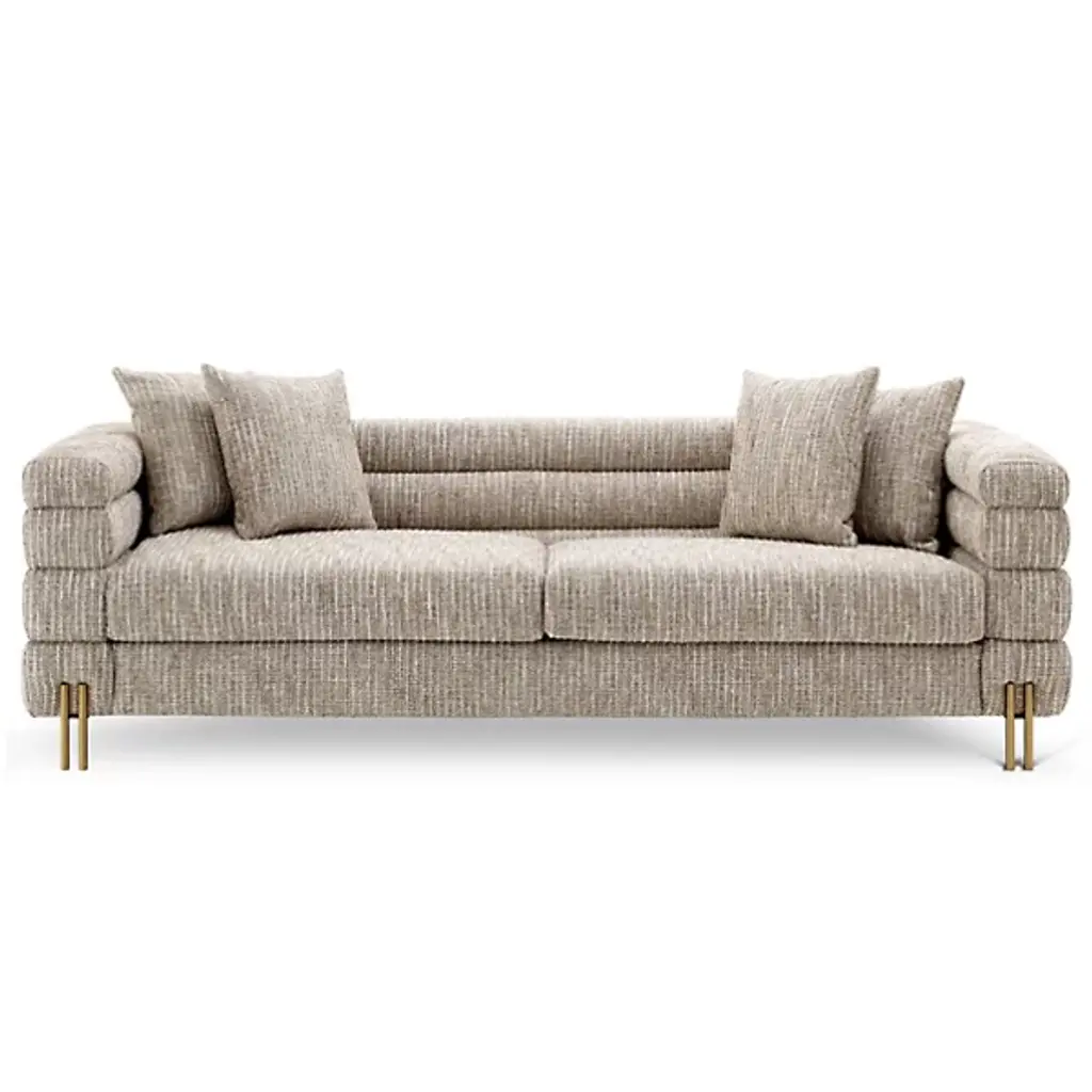 The York Sofa from Eichholtz is defined by a ribbed exterior; this sofa features a linear, contemporary design. Expertly crafted with a durable plywood frame, the sofa is upholstered in an intricately blended fabric. Ultra-slender legs keep the sofa well-balanced. Plush polyurethane cushion filling provides lasting comfort and support. York’s streamlined silhouette draws the eyes of your guests, prompting them to take a seat and relax in a state of luxury.