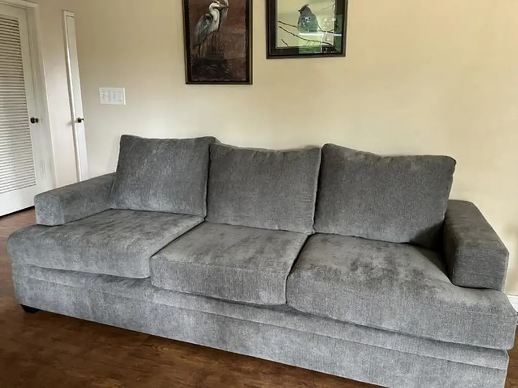 The Zoeller Charcoal Grey Fabric 97" Sofa is the ideal addition to your living room, offering both comfort and style. Its casual design and charcoal grey color make it a versatile piece that complements various decor themes. With its 100% polyester fabric and sturdy alder wood construction, this sofa is built to last.