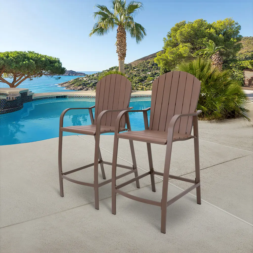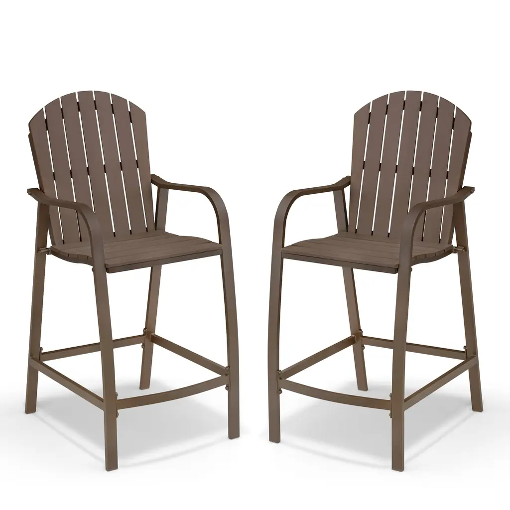2Pc Outdoor Counter Height Bar Stools - Brown - Crestlive Products: Aluminum Frame, Weather-resistant Patio Seating