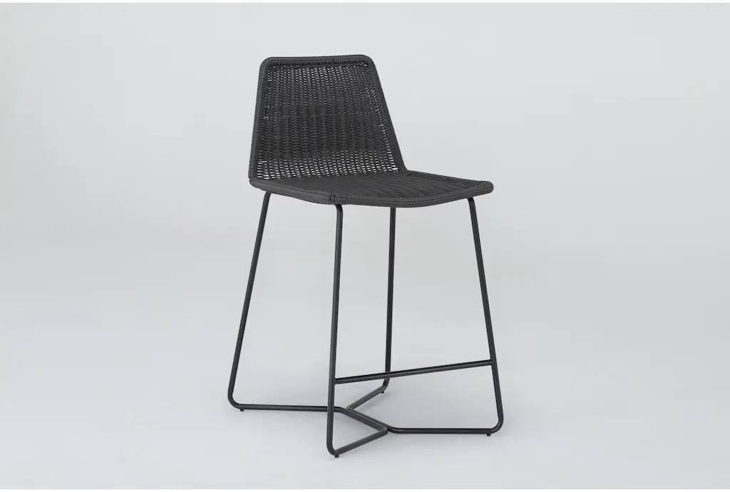 Ace Black Woven Wicker Outdoor Counter Stool With Back