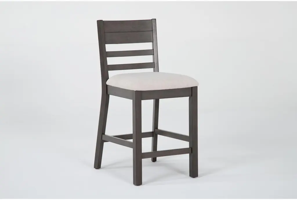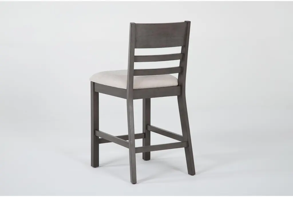 Adonis Grey Wood Back Upholstered Seat 25" Counter Height Stool | Armless | Ladder Back