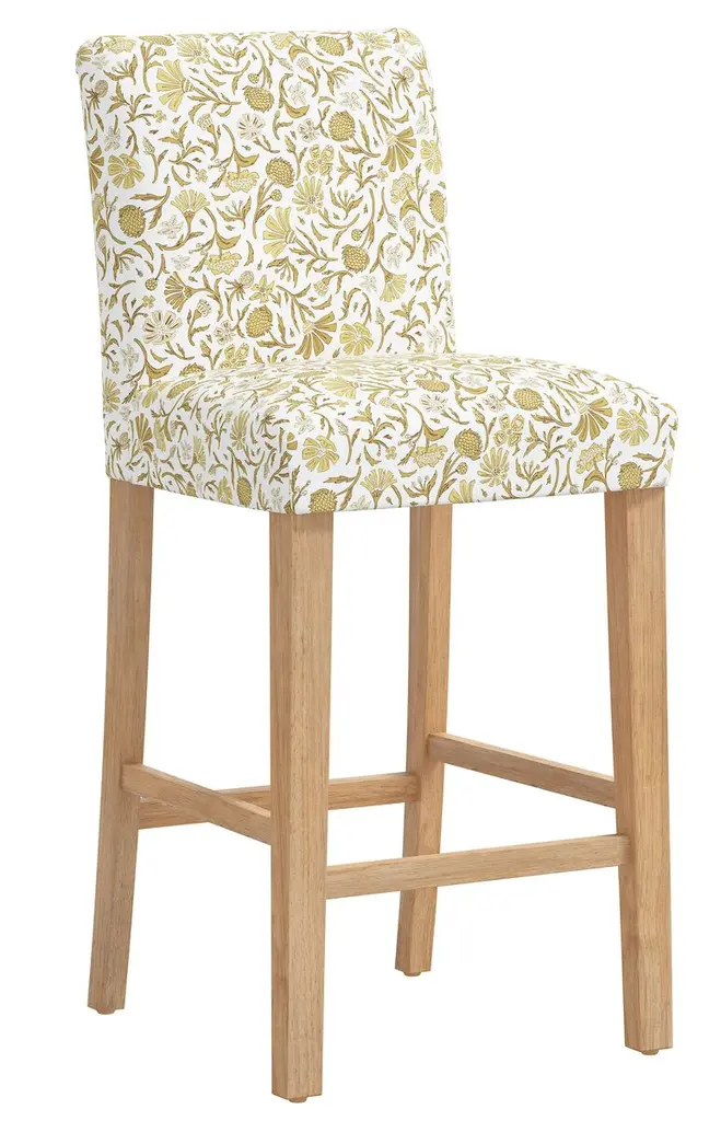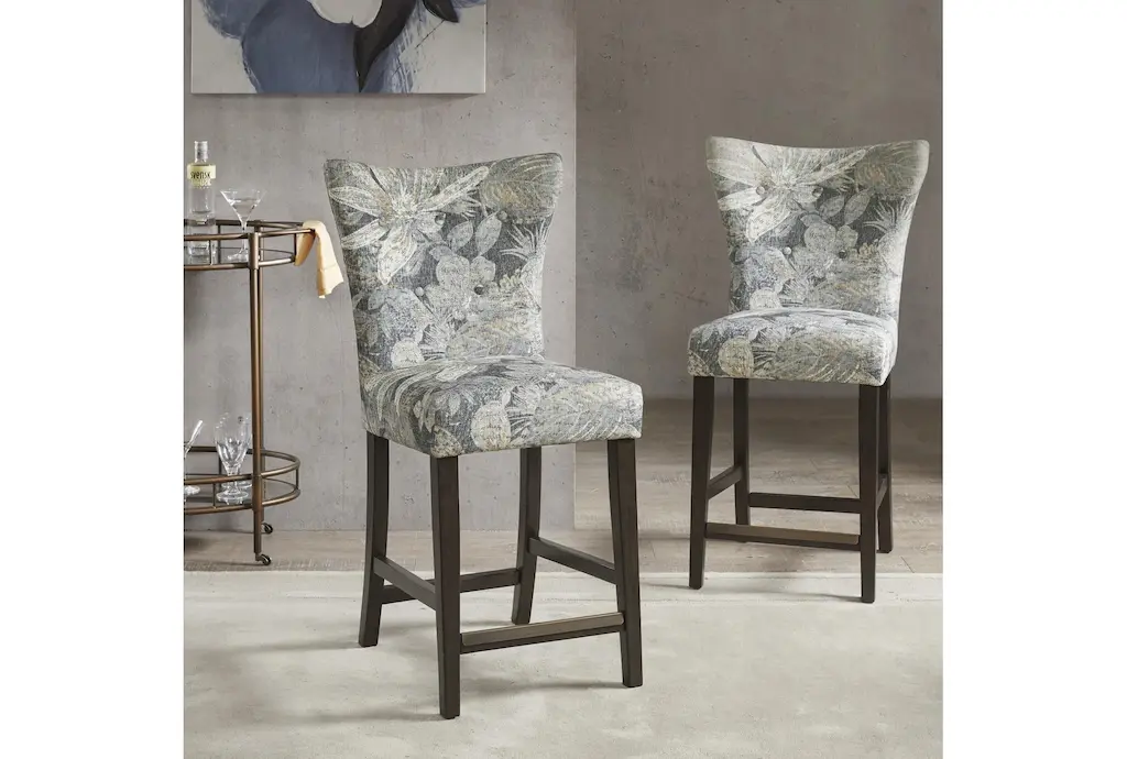Antonella Floral Upholstered 25" Counter Height Stool With Back