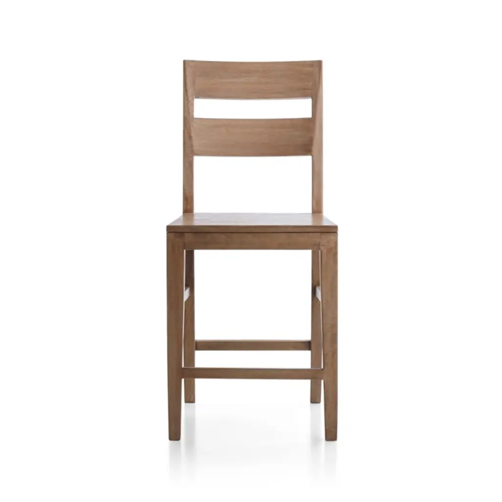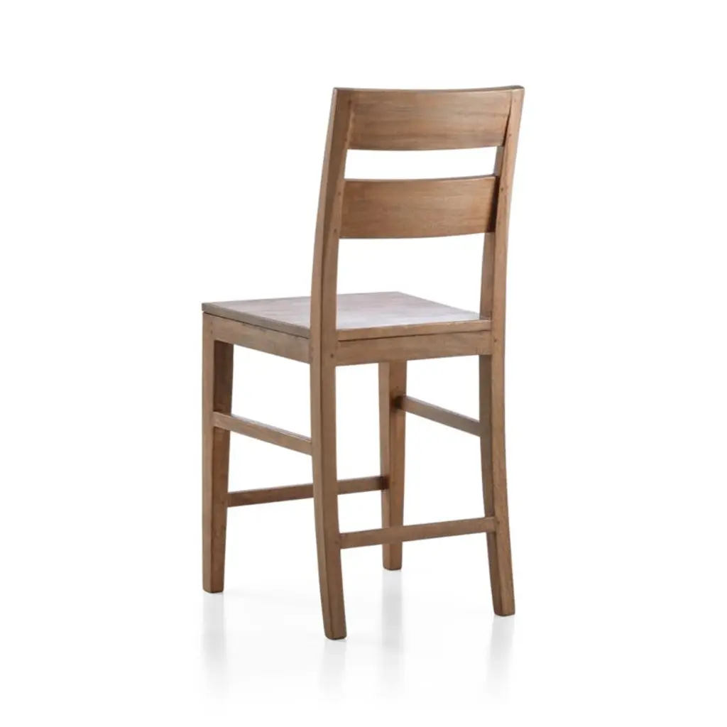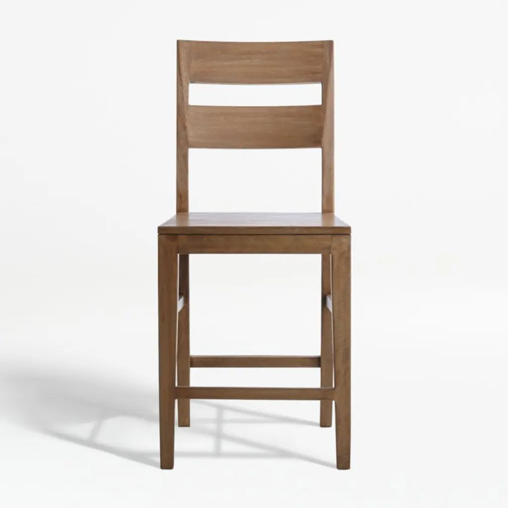 The perfect seating option for kitchen counters or high dining tables, this counter stool recalls the simple, rustic character of a European farmhouse antique. Handcrafted from hand-planed planks of sustainable solid mango wood, the stool is stained light brown and finished with a grey wash to bring out the wood's natural, organic markings.