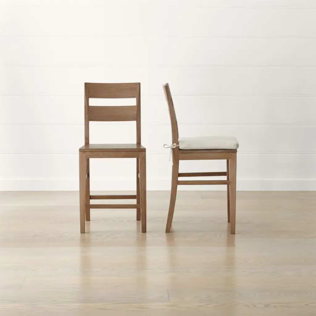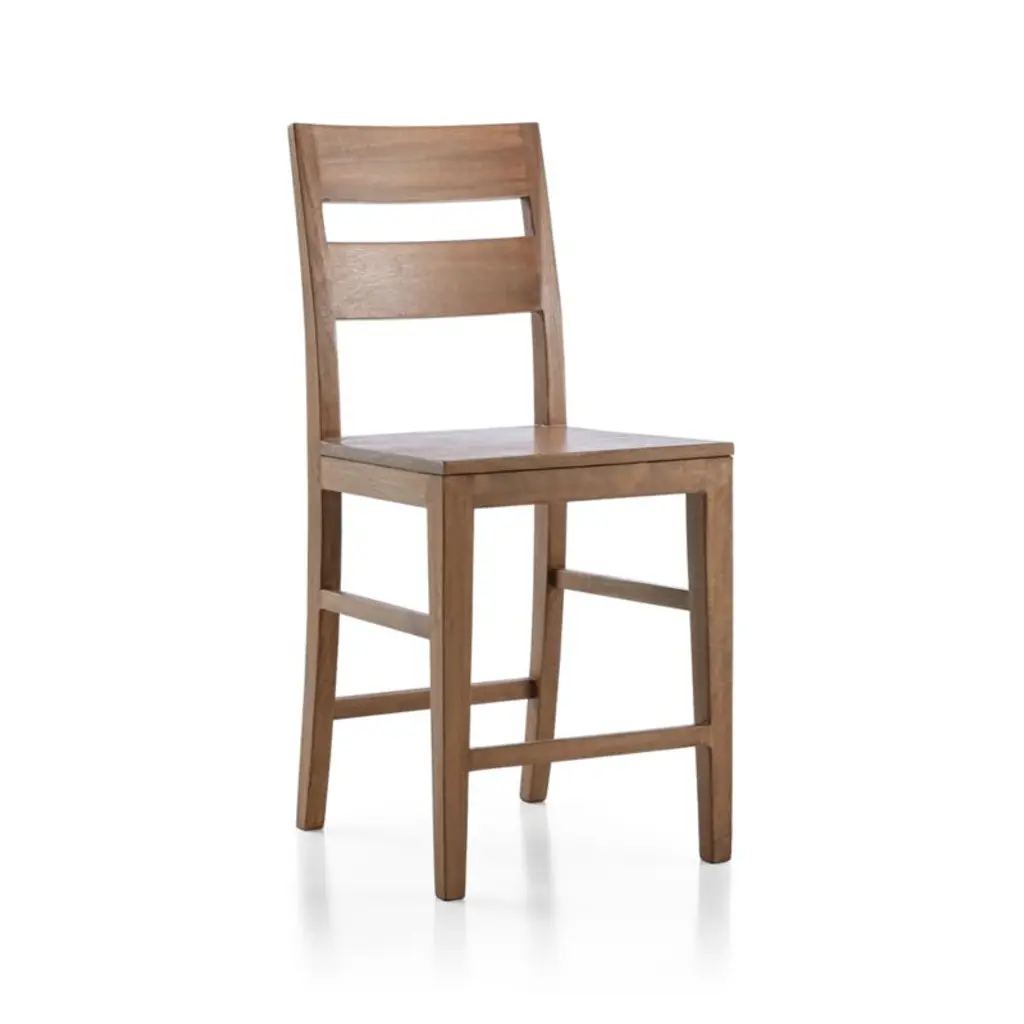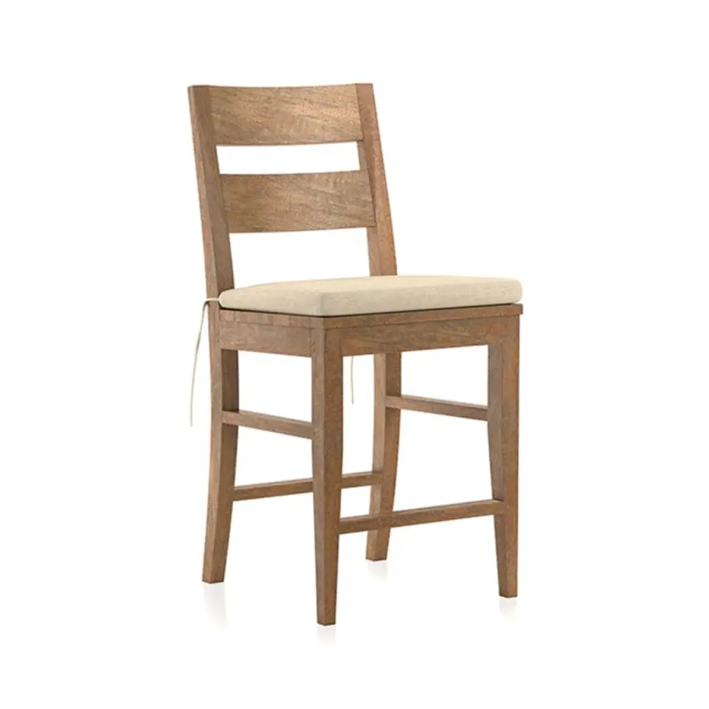 The perfect seating option for kitchen counters or high dining tables, this counter stool recalls the simple, rustic character of a European farmhouse antique. Handcrafted from hand-planed planks of sustainable solid mango wood, the stool is stained light brown and finished with a grey wash to bring out the wood's natural, organic markings.