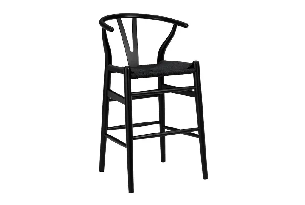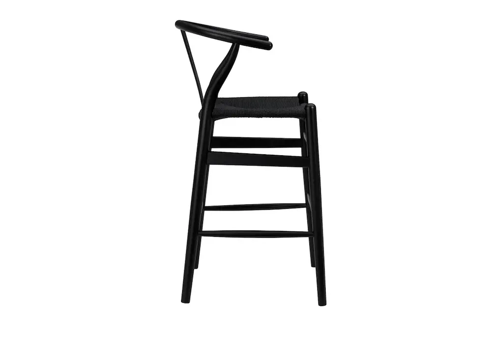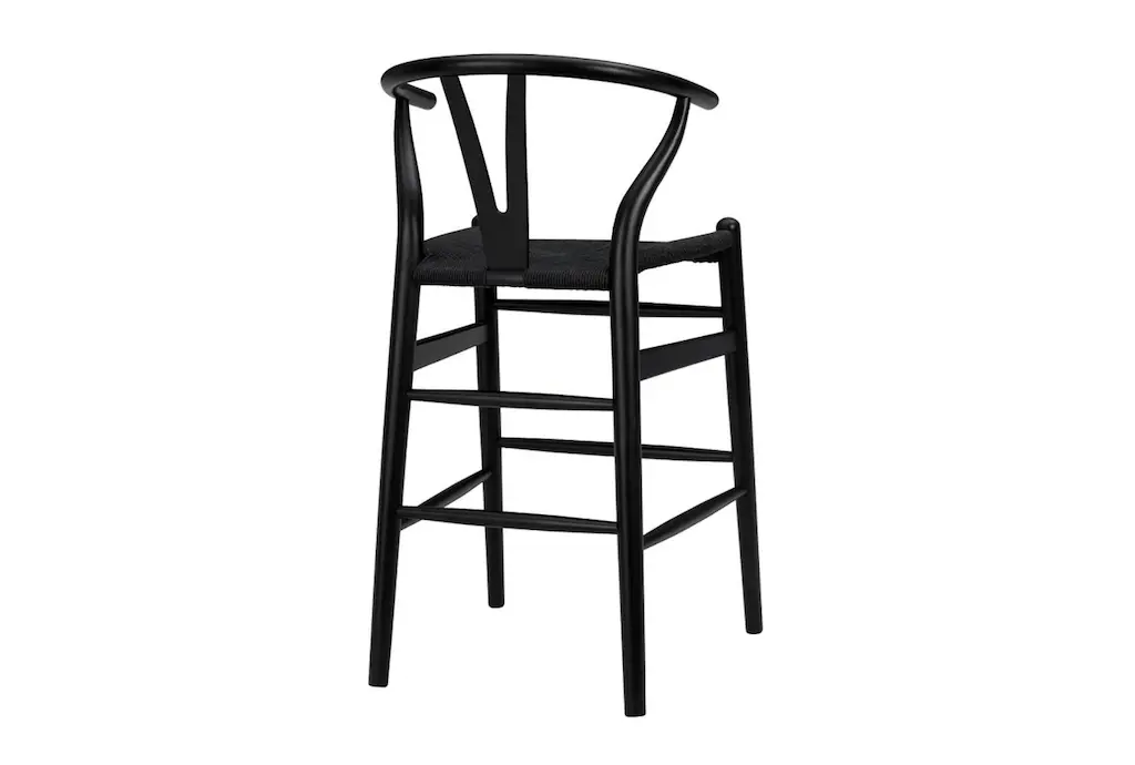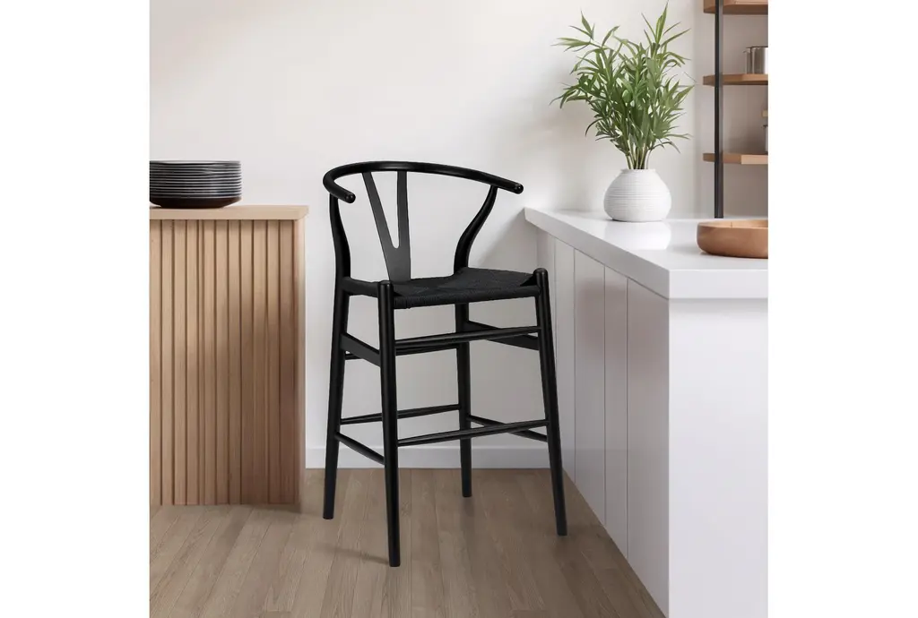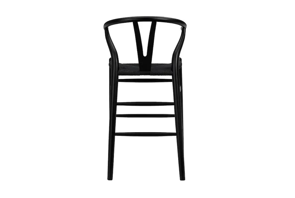Black Wishbone 26" Counter Height Stool | Rattan | Black Woven Seat | With Back