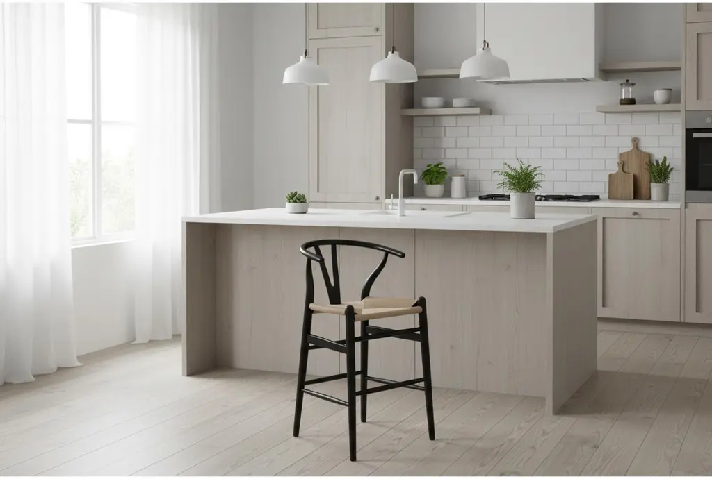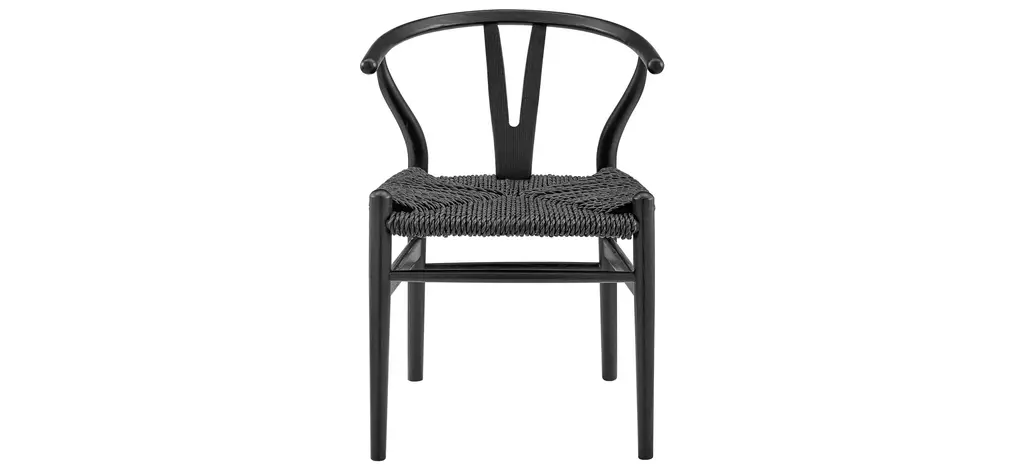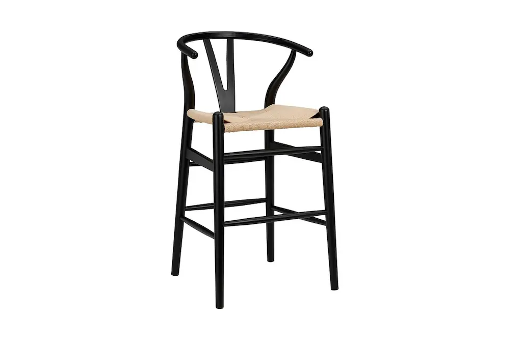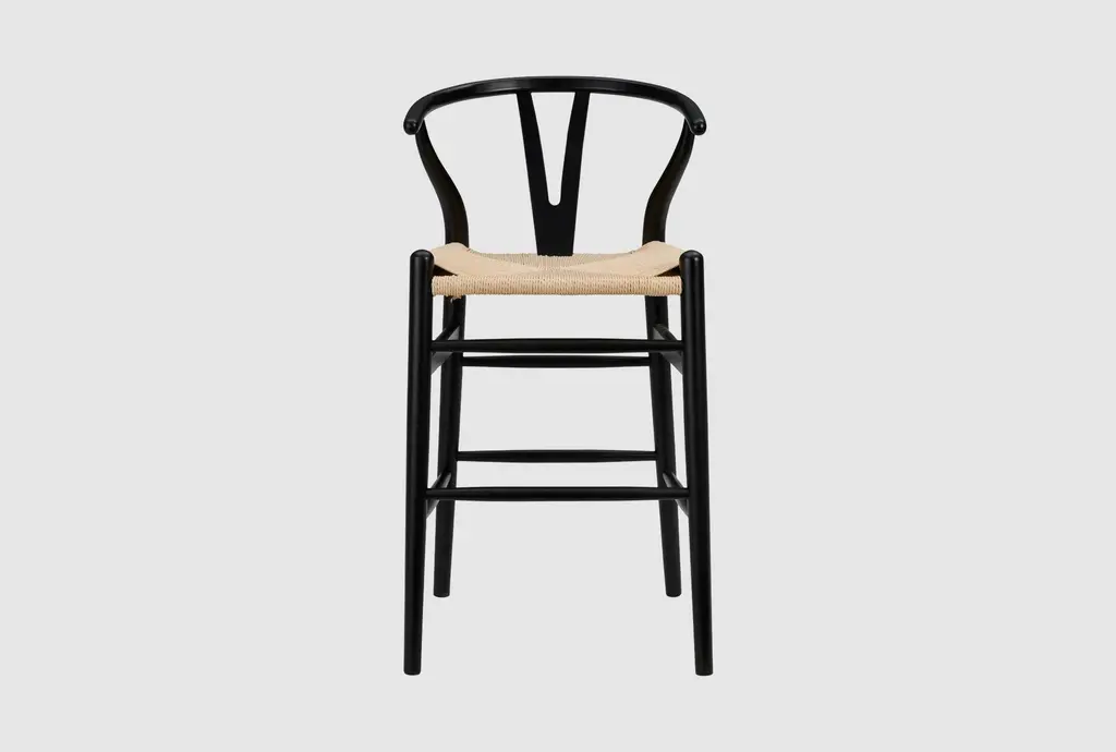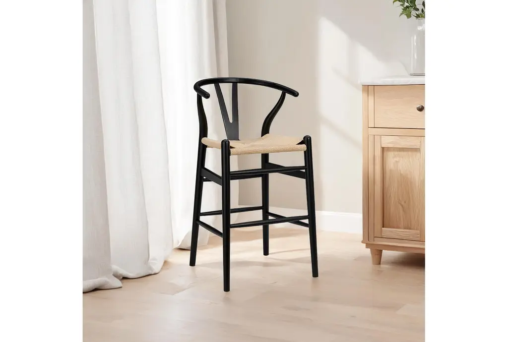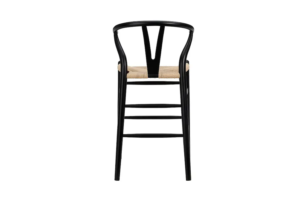 Black Wishbone 26" Counter Height Stool | Rattan | Natural Woven Seat | With Back