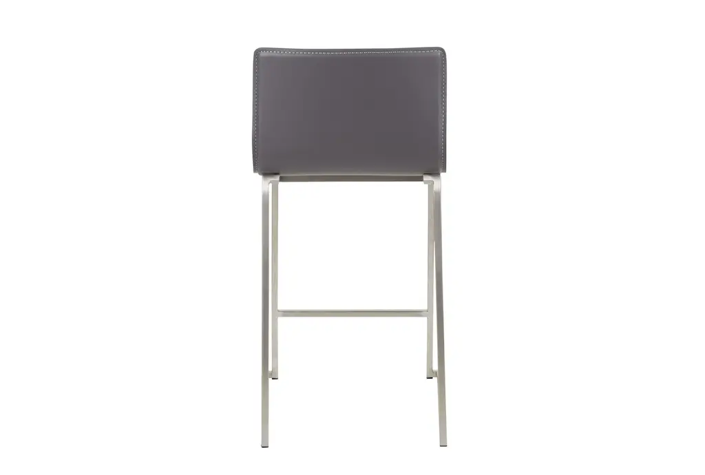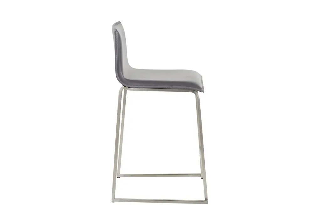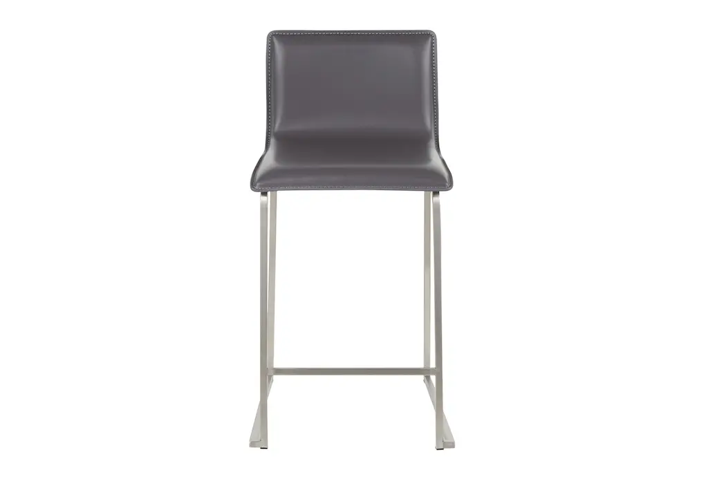 Enhance your dining room or kitchen with the Cara Brushed Stainless Metal + Grey Faux Leather 24.5" Counter Height Stool Set of 2. These modern stools feature a sleek armless design that adds a touch of sophistication to your food prep and serving space. The combination of grey faux leather and brushed stainless steel creates a contemporary look that perfectly complements any neutral decor.
