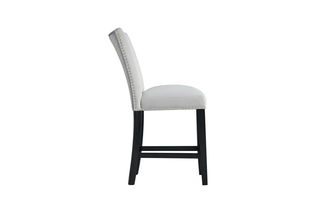 Celina Upholstered Grey Velvet Wood 42" With Back Counter Height Stool Set Of 2 | Armless | Nailhead