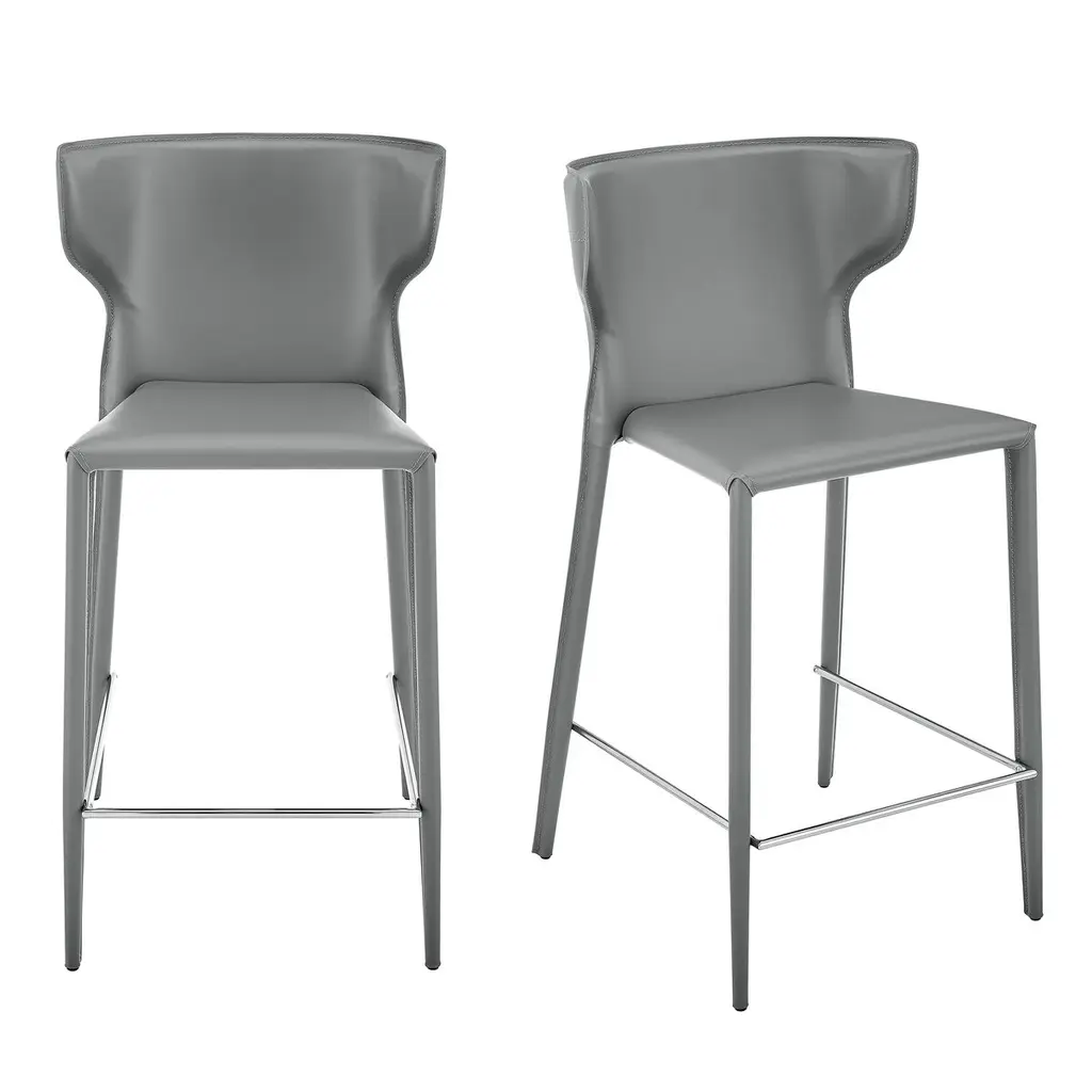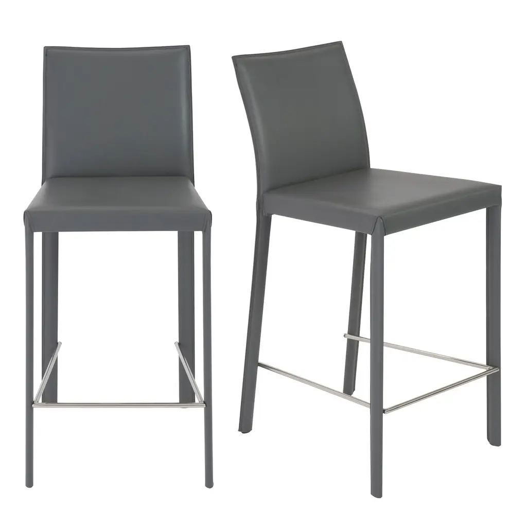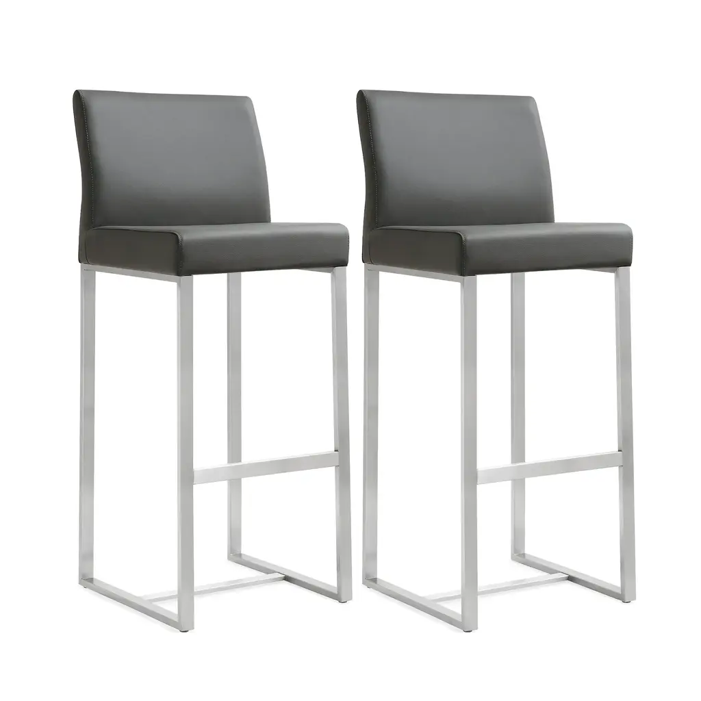 Denmark Performance Vegan Leather Stool With Silver Base - Set Of 2