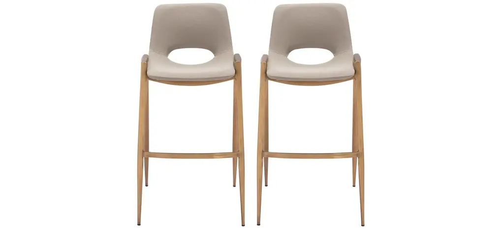 Desi Counter-Height Stool: Set of 2 has mid century modern urban lines and looks great in any space. With a heavy duty vinyl covering and a sturdy steel frame, this bar stool fits in any home kitchen or dining area.