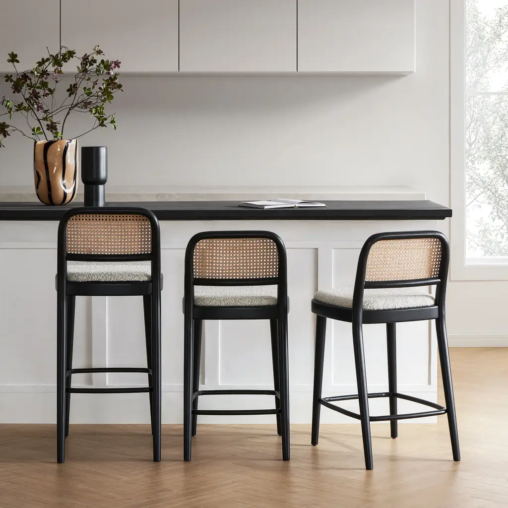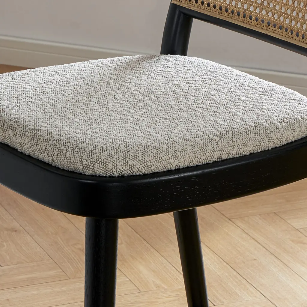 Elevated in height, Edith marries spill-resistant bouclé seats with an open-weave backrest. Serve up charm and dine in comfort.